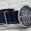 Наручные часы с автоматической системой завода заводятся от движений руки носителя. Японский механизм Seiko 4R36 сохраняет запас хода на 41 час, его работа просматривается через прозрачную заднюю крышку. Стрелки и метки имеют люминесцентное покрытиеЛюминесцентное покрытиеПозволяет считывать показания времени в темноте. Производители наносят на стрелки, часовые индексы, безель или поверхность циферблата светонакопительный состав, дающий холодное свечение., ремешок сделан из нейлона. Есть функция индикации даты и дня недели.