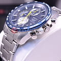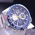 Часы-хронограф с секундомером и тахиметром. Секундомер до 12ч, точность 1/5с. Завинчивающаяся задняя крышка.