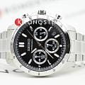 Мужские кварцевые часы Seiko SBTR013 из коллекции Spirit — это сочетание точности, функциональности и современного дизайна. Часы оснащены японским механизмом калибра 8T63 с функцией хронографаХронографФункция позволяет измерять отрезки времени с особой точностью: часы, минуты, секунды. Верным признаком хронографа является наличие на циферблате 3 дополнительных окошек-счётчиков., включающей секундомер с точностью 1/5 секунды и временем измерения до 1 часа, отображаемый центральной стрелкой. Также реализована функция тахиметраТахиметрРазмеченная шкала, располагается на ободке или безеле часов. Тахиметр позволяет рассчитать скорость на определённом участке пути, расстояние измеряется в километрах или милях.. Центральные часовая и минутная стрелки дополнены вынесенной секундной стрелкой на отдельном циферблате, окошко даты расположено между отметками 4 и 5 часов. Циферблат чёрного цвета оформлен штриховыми метками, стрелки и метки покрыты люминесцентным покрытиемЛюминесцентное покрытиеПозволяет считывать показания времени в темноте. Производители наносят на стрелки, часовые индексы, безель или поверхность циферблата светонакопительный состав, дающий холодное свечение. LumiBrite, обеспечивающим хорошую читаемость в темноте. Корпус выполнен из нержавеющей стали и защищён прочным минеральным стеклом Hardlex, устойчивым к царапинам. Браслет из нержавеющей стали фиксируется на раскладной застёжкеРаскладная застёжкаТакой тип застёжки используется только на браслетах из металла. Она никогда не раскрывается полностью, происходит разделение на 2 и более частей. Раскладывающая застёжка снизит вероятность потери часов к минимуму.. Водонепроницаемость 100 м позволяет использовать часы для плавания, ныряния и других водных видов спорта. Модель подходит как для повседневного, так и для делового образа.