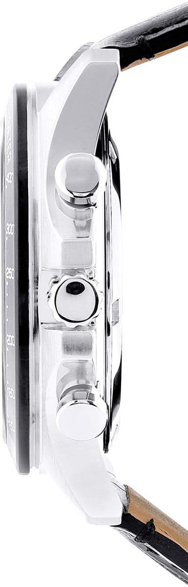 Мужские японские часы-хронографХронографФункция позволяет измерять отрезки времени с особой точностью: часы, минуты, секунды. Верным признаком хронографа является наличие на циферблате 3 дополнительных окошек-счётчиков. с секундомеромСекундомерСекундоме́р — прибор, способный измерять интервалы времени с точностью до долей секунды. Seiko Spirit Chronograph SBTR021 — это великолепное сочетание стиля и функциональности, созданное для современных искателей приключений. Минеральное стеклоМинеральное стеклоМинеральное стекло представляет собой искусственно выращенный минерал кварца. Такое стекло отличается особой устойчивостью к повреждениям и царапинам. Уступает по некоторым качествам сапфировому стеклу. с повышенной прочности Hardlex гарантирует защиту циферблата от царапин, сохраняя их безупречный вид на протяжении долгого времени. Внутри этих часов установлен кварцевый механизм, который обеспечивает высокую точность и надежность, позволяя вам всегда оставаться в курсе времени. Класс водозащиты в 100 метров позволяет вам не только плавать и нырять, но и заниматься разнообразными водными видами спорта, уверенно полагаясь на это надежное устройство, которое выдержит даже самые экстремальные условия. Корпус часов изготовлены из прочной нержавеющей стали, что укрепляет их долговечность и подчеркивает современный дизайн. Неподвижный безельБезельВнешний ободок, закрепляющий стекло. В спортивных часах так называется поворотное кольцо с делениями на циферблате, выполняет роль таймера – замеряет отрезки времени на шкале. Неподвижный безель – элемент декора. Однонаправленно вращающийся безель на дайверских часах позволяет фиксировать моменты погружения и выныривания на поверхность. с PVD-покрытиемPVDУльтратонкое покрытие наносится в технике вакуумного напыления, сочетает в себе нитрид титана особой прочности со слоем золота или оксида хрома. Несёт в себе декоративную или защитную функцию. черного цвета, диаметр 42 мм. Шкала тахиметраТахиметрРазмеченная шкала, располагается на ободке или безеле часов. Тахиметр позволяет рассчитать скорость на определённом участке пути, расстояние измеряется в километрах или милях. по внешнему краю. Удобное окошко даты в позиции между 4 и 5 часов, делает эти часы еще более практичными, позволяя быстро сверять текущую дату. Кроме того, стрелки и метки часов оснащены люминесцентным покрытиемЛюминесцентное покрытиеПозволяет считывать показания времени в темноте. Производители наносят на стрелки, часовые индексы, безель или поверхность циферблата светонакопительный состав, дающий холодное свечение., что обеспечивает отличную видимость даже в условиях низкой освещенности, поэтому вы всегда сможете узнать время, независимо от окружающей среды. Кожаный ремешок на застёжке-бабочке с кнопкамиЗастёжка "бабочка"Такой вид застёжки дополняется предохранителями, помогающими избежать случайного раскрытия браслета. Обладают изящным исполнением. обеспечивает комфорт и удобство в использовании, добавляя завершающий штрих к этому стильному и высокоэффективному аксессуару.