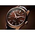 Seiko Presage SPB170 – мужские японские механические часы, представляющие собой симбиоз классических традиций и инновационных решений. Часы защищены сапфировым стекломСапфировое стеклоПрочный и надёжный материал из кристалла сапфира синтетического происхождения, характеризующийся особой твёрдостью и устойчивостью к царапинам и повреждениям., известным своей непревзойденной твердостью и устойчивостью к царапинам, что гарантирует продолжительный срок службы без ущерба для внешнего вида. Корпус часов выполнен из высококачественной нержавеющей стали, что обеспечивает изделию необходимую прочность и долговечность. Окошко даты, расположенное на отметке «3 часа», позволяет легко следить за текущей датой. Класс водонепроницаемости 100 метров делает эти часы подходящими для плавания, ныряния и других водных активностей. Такая степень защиты позволяет часам сохранять свою работоспособность даже при погружениях на значительные глубины. Кожаный ремешок закреплен на раскладной застёжкеРаскладная застёжкаТакой тип застёжки используется только на браслетах из металла. Она никогда не раскрывается полностью, происходит разделение на 2 и более частей. Раскладывающая застёжка снизит вероятность потери часов к минимуму., что обеспечивает удобство и надежность фиксации на запястье. Механизм часов оснащен 24 камнями, что способствует плавному движению стрелок и продлению срока службы изделия. Частота колебаний составляет 21 600 полуколебаний в час, а запас хода достигает внушительных 70 часов. Функция stop-second позволяет точно настраивать время, останавливая секундную стрелку при вытягивании заводной головки. Дополнительно предусмотрена возможность ручного завода, что дает больше свободы в управлении часами. Завинчивающаяся прозрачная задняя крышка демонстрирует внутренний механизм часов, добавляя изделию элемент эстетической привлекательности. Стрелки покрыты люминесцентным составомЛюминесцентное покрытиеПозволяет считывать показания времени в темноте. Производители наносят на стрелки, часовые индексы, безель или поверхность циферблата светонакопительный состав, дающий холодное свечение., что облегчает считывание времени в условиях слабого освещения. Seiko Presage SPB170 – это часы, которые гармонично соединяют в себе наследие японского часового ремесла и современные технологические решения, становясь не только надежным инструментом измерения времени, но и стильным аксессуаром, подчеркивающим индивидуальность своего владельца.