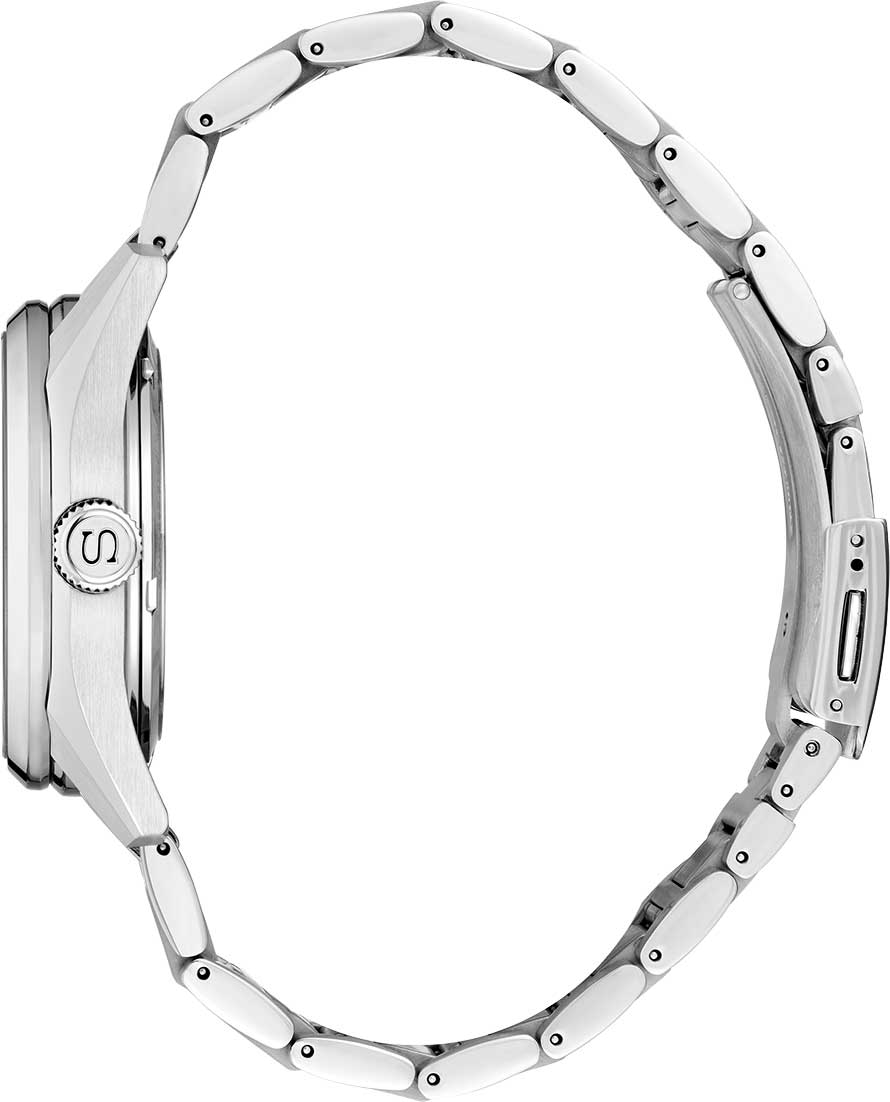 Механические часы Seiko Presage Sharp Edged SPB307 — это сочетание японского искусства и современных технологий. Их дизайн вдохновлён древним узором «Асаноха», известным ещё с эпохи Хэйан и отражающим философию гармонии и природной целостности. Часы оснащены калибром 6R21 — надёжным механизмом с автоподзаводом и возможностью ручной подзаводки. Механизм работает на частоте 28 800 полуколебаний в час, имеет 29 драгоценных камней и обеспечивает запас хода до 45 часов с на циферблате. Также реализована функция стоп-секунды для точной установки времени. Циферблат оформлен штриховыми метками, а информация о числе и дне недели вынесена на отдельные малые циферблаты, что делает функционал часов удобным и визуально сбалансированным. Стрелки и метки дополнены люминесцентным покрытиемЛюминесцентное покрытиеПозволяет считывать показания времени в темноте. Производители наносят на стрелки, часовые индексы, безель или поверхность циферблата светонакопительный состав, дающий холодное свечение. LumiBrite, обеспечивающим отличную читаемость даже в условиях слабого освещения. Защиту циферблата обеспечивает сапфировое стеклоСапфировое стеклоПрочный и надёжный материал из кристалла сапфира синтетического происхождения, характеризующийся особой твёрдостью и устойчивостью к царапинам и повреждениям. с антибликовым покрытием на внутренней поверхности, что делает его не только прочным, но и удобным для считывания информации при любом освещении. Корпус изготовлен из нержавеющей стали, а задняя крышка — завинчивающаяся и прозрачная, что позволяет рассмотреть детали работы механизма. Браслет выполнен из стали и оснащён трёхсгибной раскладной застёжкойРаскладная застёжкаТакой тип застёжки используется только на браслетах из металла. Она никогда не раскрывается полностью, происходит разделение на 2 и более частей. Раскладывающая застёжка снизит вероятность потери часов к минимуму. с кнопочным механизмом, обеспечивающей надёжную фиксацию и комфорт при ношении. Часы обладают водонепроницаемостью WR 100, что позволяет использовать их при плавании или занятиях водными видами спорта без глубокого погружения. Эти часы станут идеальным аксессуаром для тех, кто ценит традиции, эстетику и современные технологии — универсальный спутник, подчёркивающий статус и индивидуальность своего владельца.