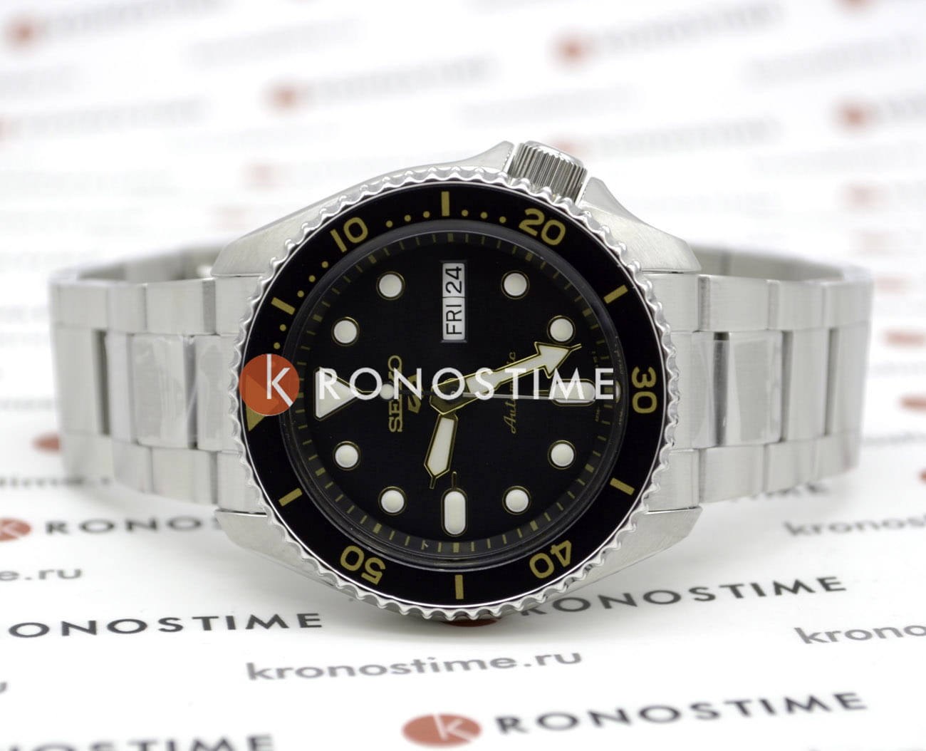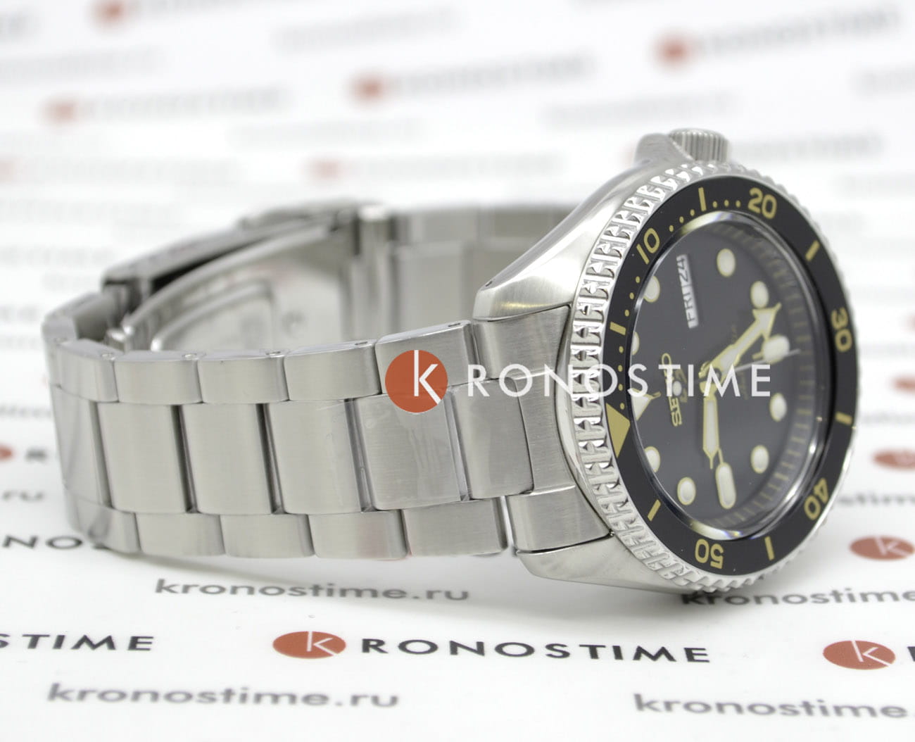 Мужские японские механические часы Seiko 5 Sports SRPD57K1S, механический механизм (автоматический калибр) с высокой точностью. Класс водозащиты: 100 метров, позволит плавать, нырять и заниматься другими водными видами спорта. Корпус часов изготовлен из стали. Стальной браслет на раскладной застёжкеРаскладная застёжкаТакой тип застёжки используется только на браслетах из металла. Она никогда не раскрывается полностью, происходит разделение на 2 и более частей. Раскладывающая застёжка снизит вероятность потери часов к минимуму.. БезельБезельВнешний ободок, закрепляющий стекло. В спортивных часах так называется поворотное кольцо с делениями на циферблате, выполняет роль таймера – замеряет отрезки времени на шкале. Неподвижный безель – элемент декора. Однонаправленно вращающийся безель на дайверских часах позволяет фиксировать моменты погружения и выныривания на поверхность. с PVD-покрытиемPVDУльтратонкое покрытие наносится в технике вакуумного напыления, сочетает в себе нитрид титана особой прочности со слоем золота или оксида хрома. Несёт в себе декоративную или защитную функцию.. Стрелки и метки с люминесцентным покрытиемЛюминесцентное покрытиеПозволяет считывать показания времени в темноте. Производители наносят на стрелки, часовые индексы, безель или поверхность циферблата светонакопительный состав, дающий холодное свечение.. Окошки дня недели и даты находятся в положении 3 часа.