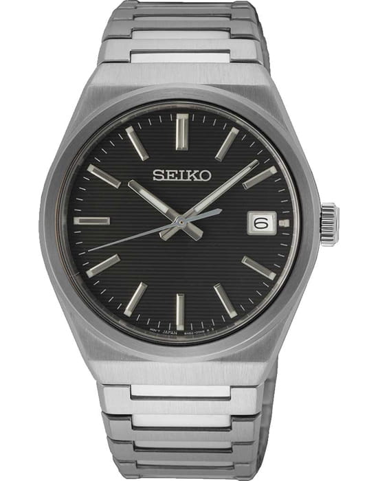 Мужские японские часы Seiko Conceptual Series Dress SUR557P1 с сапфировым стекломСапфировое стеклоПрочный и надёжный материал из кристалла сапфира синтетического происхождения, характеризующийся особой твёрдостью и устойчивостью к царапинам и повреждениям., кварцевый механизм с высокой точностью. Класс водозащиты: 100 метров, позволит плавать, нырять и заниматься другими водными видами спорта. Корпус часов изготовлен из нержавеющей стали. Стальной браслет на раскладной застёжкеРаскладная застёжкаТакой тип застёжки используется только на браслетах из металла. Она никогда не раскрывается полностью, происходит разделение на 2 и более частей. Раскладывающая застёжка снизит вероятность потери часов к минимуму.. Стрелки и метки с люминесцентным покрытиемЛюминесцентное покрытиеПозволяет считывать показания времени в темноте. Производители наносят на стрелки, часовые индексы, безель или поверхность циферблата светонакопительный состав, дающий холодное свечение. LumiBrite. Окошко даты находится в положении 3 часа.