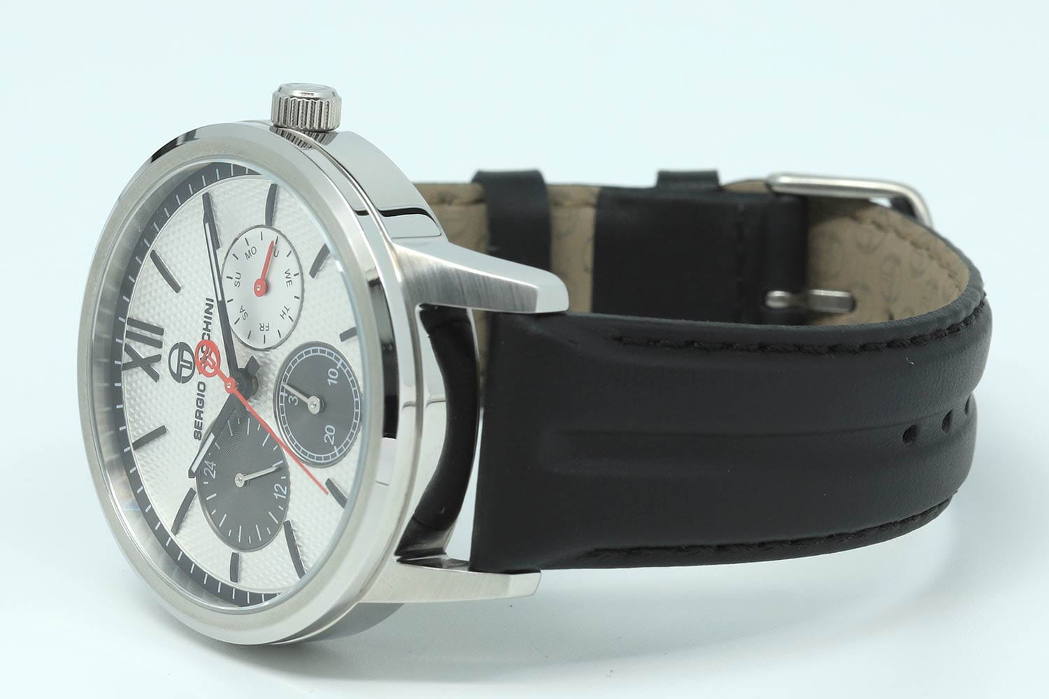 Мужские кварцевые часы Sergio Tacchini из коллекции Archivio — это сочетание классического стиля и надёжной техники. Корпус диаметром 45 мм выполнен из нержавеющей стали 316L. Циферблат белого цвета оформлен декоративным узором, индексами и стрелками. Указатели дня недели и даты вынесены на отдельные субциферблаты, также присутствует индикация 24-часового формата времени. Циферблат защищён минеральным стекломМинеральное стеклоМинеральное стекло представляет собой искусственно выращенный минерал кварца. Такое стекло отличается особой устойчивостью к повреждениям и царапинам. Уступает по некоторым качествам сапфировому стеклу.. Часы оснащены кожаным ремешком чёрного цвета с стандартной застёжкой. Водонепроницаемость 50 м позволяет использовать часы в повседневных условиях. Идеальный выбор для тех, кто ценит лаконичный дизайн и качество.