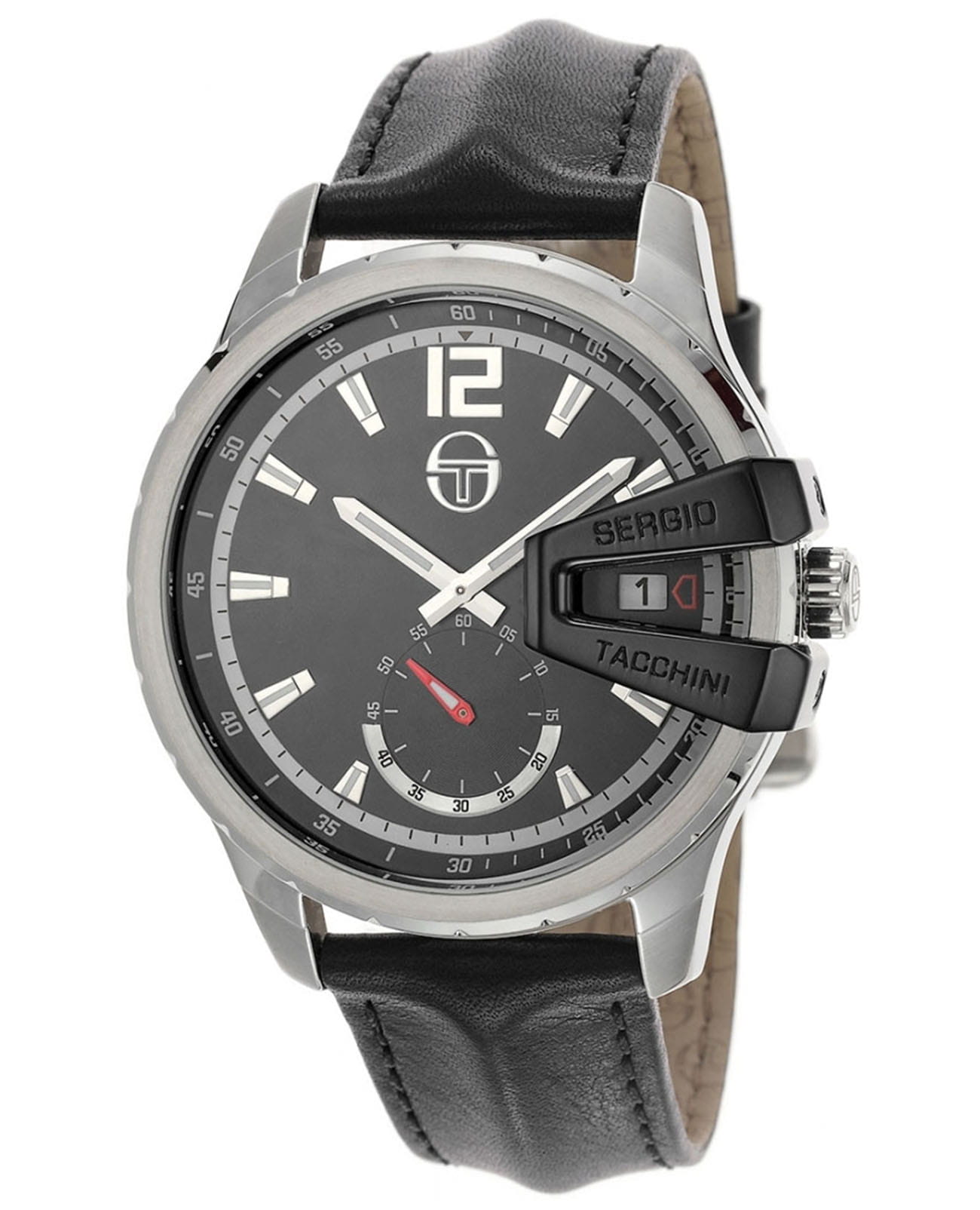 Мужские кварцевые часы Sergio Tacchini из коллекции Archivio — это стильный аксессуар для активного образа жизни. Корпус диаметром 45 мм выполнен из нержавеющей стали 316L. Циферблат чёрного цвета оформлен по технологии Sunray («солнечные лучи»), дополнен индексами и стрелками. Окошко даты расположено в положении 3 часов, секундная стрелка вынесена на отдельный субциферблат. Циферблат защищён минеральным стекломМинеральное стеклоМинеральное стекло представляет собой искусственно выращенный минерал кварца. Такое стекло отличается особой устойчивостью к повреждениям и царапинам. Уступает по некоторым качествам сапфировому стеклу.. Часы оснащены кожаным ремешком чёрного цвета с раскладной застёжкойРаскладная застёжкаТакой тип застёжки используется только на браслетах из металла. Она никогда не раскрывается полностью, происходит разделение на 2 и более частей. Раскладывающая застёжка снизит вероятность потери часов к минимуму.. Водонепроницаемость 50 м позволяет использовать часы в повседневных условиях. Надёжный выбор для тех, кто ценит качество и современный дизайн.