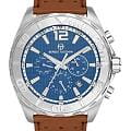 Sergio Tacchini ST.9.107.02 — мужские часы с выразительным спортивным характером, в которых сочетаются динамичный стиль и функциональность. Крупный корпус из нержавеющей стали подчёркивает мощный облик модели, а насыщенно-синий циферблат с тройной индикацией и окошком даты. Функция хронографХронографФункция позволяет измерять отрезки времени с особой точностью: часы, минуты, секунды. Верным признаком хронографа является наличие на циферблате 3 дополнительных окошек-счётчиков. позволяет с высокой точностью измерять промежутки времени, а фиксированный безельБезельВнешний ободок, закрепляющий стекло. В спортивных часах так называется поворотное кольцо с делениями на циферблате, выполняет роль таймера – замеряет отрезки времени на шкале. Неподвижный безель – элемент декора. Однонаправленно вращающийся безель на дайверских часах позволяет фиксировать моменты погружения и выныривания на поверхность. с минутной шкалой придаёт модели дополнительную спортивную выразительность. Циферблат защищён минеральным стекломМинеральное стеклоМинеральное стекло представляет собой искусственно выращенный минерал кварца. Такое стекло отличается особой устойчивостью к повреждениям и царапинам. Уступает по некоторым качествам сапфировому стеклу., устойчивым к мелким царапинам, а перфорированный кожаный ремешок с застёжкой-классикой обеспечивает комфорт и вентиляцию при активном ношении. Водозащита 50 м делает часы подходящими для повседневных условий и лёгких водных нагрузок. Sergio Tacchini — выбор тех, кто ценит энергичный ритм жизни и безупречный итальянский дизайн.
