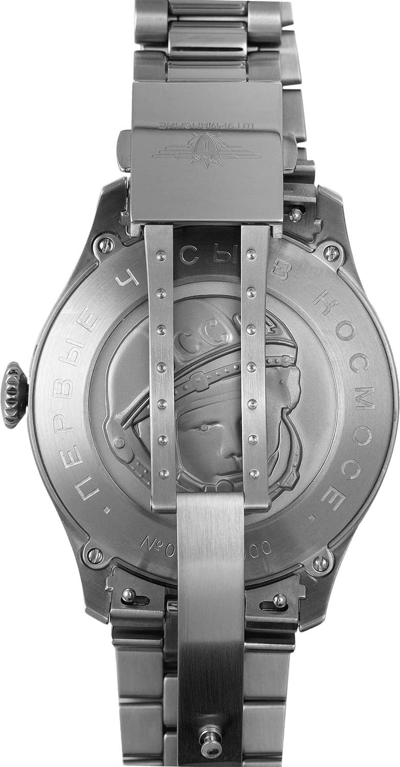 Штурманские мужские российские механические часы 2416/3805145B с механизмом высокой точности. Класс водозащиты: 50 метров, позволит защитить корпус от случайных брызг или капель дождя. Корпус часов изготовлен из стали. Сапфировое стеклоСапфировое стеклоПрочный и надёжный материал из кристалла сапфира синтетического происхождения, характеризующийся особой твёрдостью и устойчивостью к царапинам и повреждениям. устойчивое к мелким механическим повреждениям. Стальной браслет на застёжке «бабочка» с кнопкамиЗастёжка "бабочка"Такой вид застёжки дополняется предохранителями, помогающими избежать случайного раскрытия браслета. Обладают изящным исполнением. . Стрелки и метки с люминесцентным покрытиемЛюминесцентное покрытиеПозволяет считывать показания времени в темноте. Производители наносят на стрелки, часовые индексы, безель или поверхность циферблата светонакопительный состав, дающий холодное свечение.. Задняя крышка украшена портретом Юрия Гагарина и крепится на 4-х винтах.