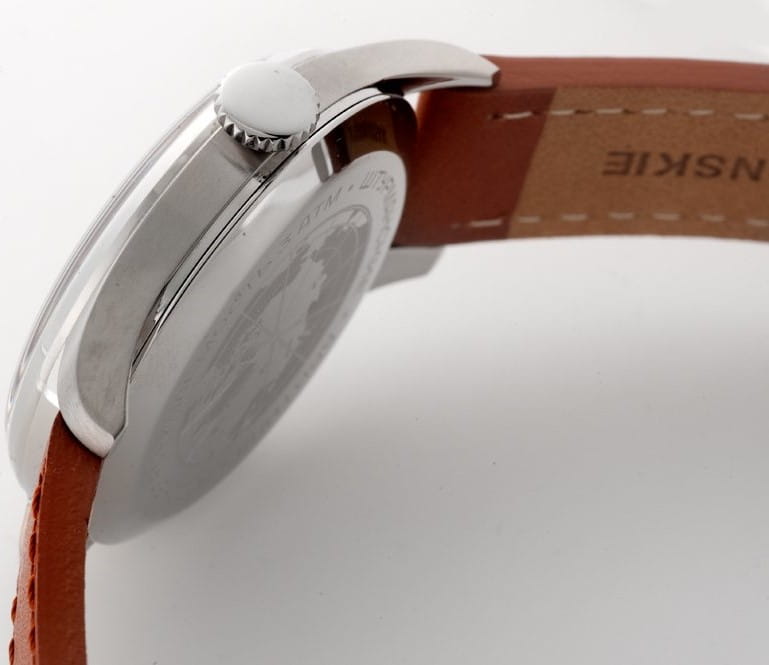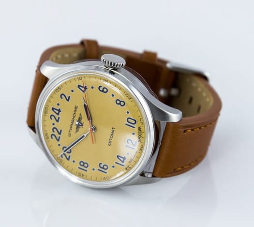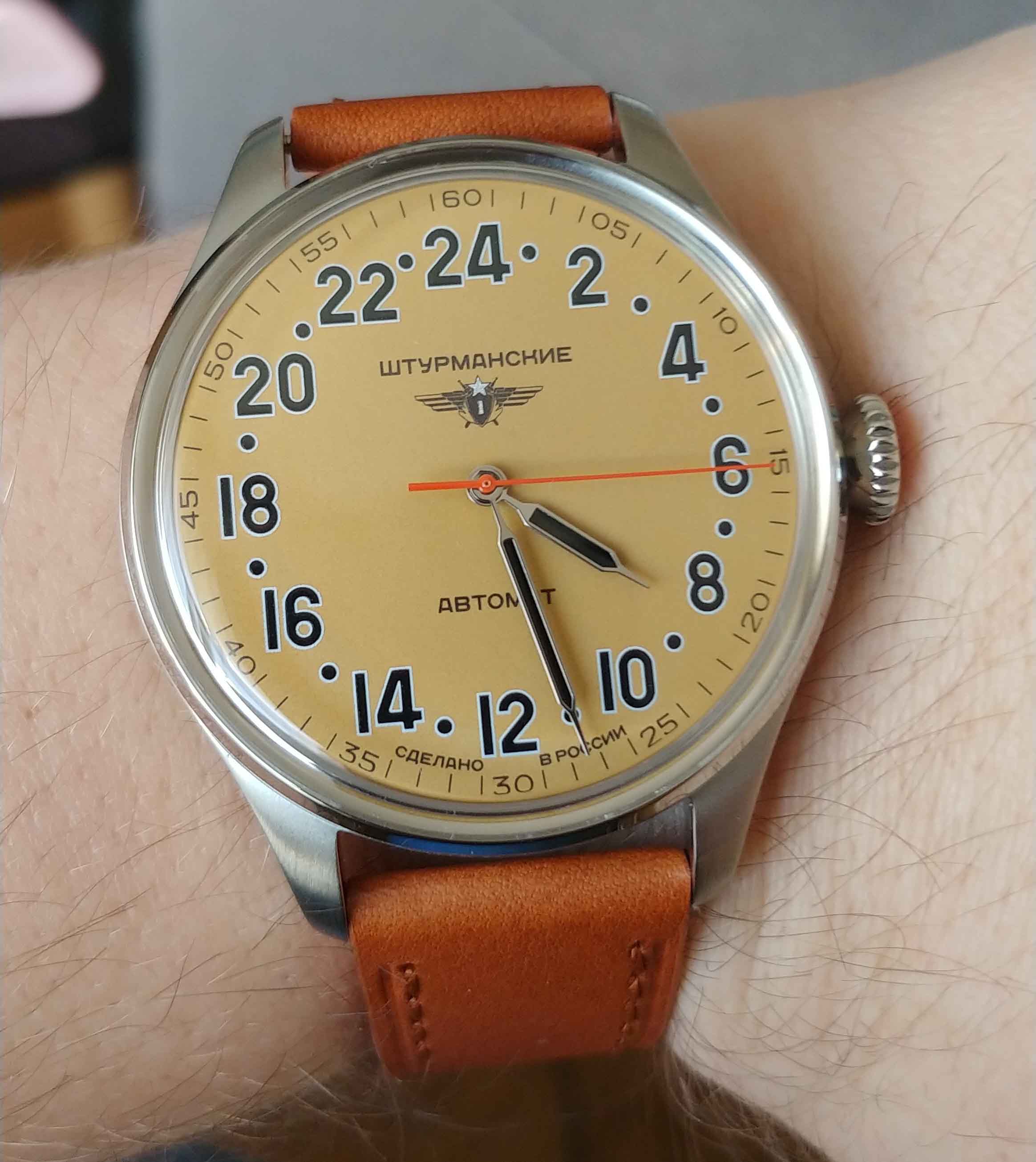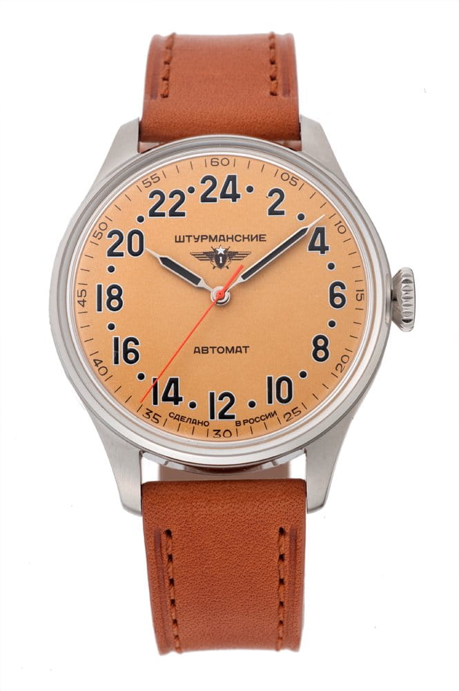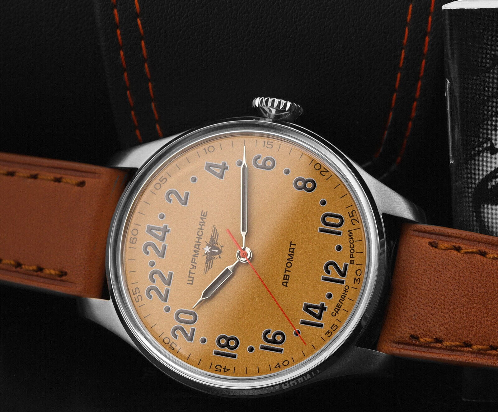 Штурманские мужские российские механические часы Штурманские Наследие Арктика 2431/6821344, механический механизм (автоматический калибр) с высокой точностью. Класс водозащиты: 30 метров, позволит защитить корпус от случайных брызг или капель дождя. Корпус часов изготовлен из стали. Кожаный ремешок на стандартной застёжке. В механизме 32 камня. Запас хода 31 час. Возможность ручного завода. 24-часовой формат отображения времени, часовая стрелка делает один оборот за сутки. Стрелки и метки с люминесцентным покрытиемЛюминесцентное покрытиеПозволяет считывать показания времени в темноте. Производители наносят на стрелки, часовые индексы, безель или поверхность циферблата светонакопительный состав, дающий холодное свечение..