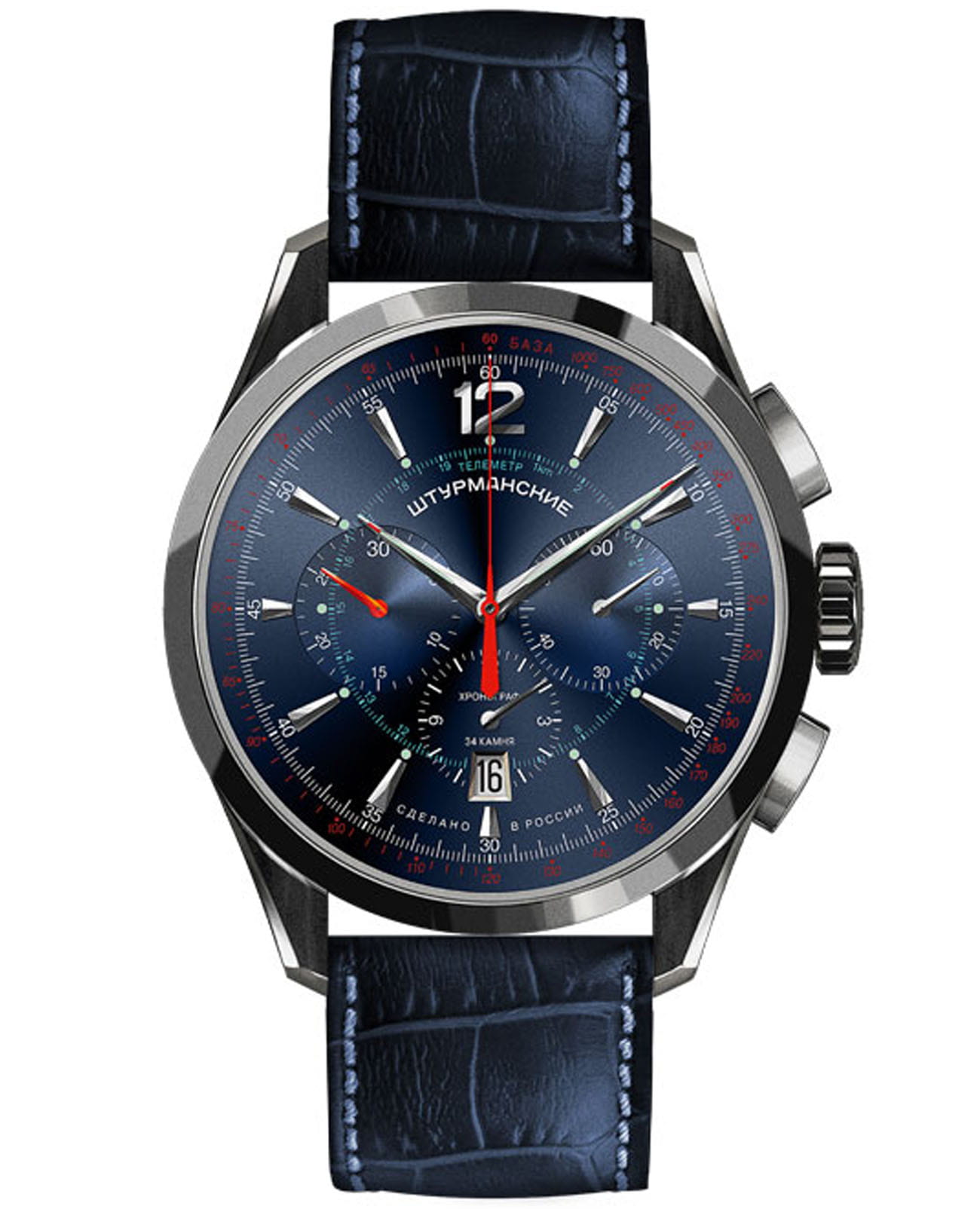 Лимитированные мужские российские механические часы-хронографХронографФункция позволяет измерять отрезки времени с особой точностью: часы, минуты, секунды. Верным признаком хронографа является наличие на циферблате 3 дополнительных окошек-счётчиков. с секундомеромСекундомерСекундоме́р — прибор, способный измерять интервалы времени с точностью до долей секунды. Штурманские Открытый Космос NE88-1855555, механический механизм (автоматический калибр) с высокой точностью. Сапфировое стеклоСапфировое стеклоПрочный и надёжный материал из кристалла сапфира синтетического происхождения, характеризующийся особой твёрдостью и устойчивостью к царапинам и повреждениям. устойчивое к появлению царапин, обладающее высокой прозрачностью. Класс водозащиты: 50 метров, позволит защитить корпус от случайных брызг или капель дождя. Корпус часов изготовлен из стали. Кожаный ремешок на стандартной застёжке. Стрелки и метки с люминесцентным покрытиемЛюминесцентное покрытиеПозволяет считывать показания времени в темноте. Производители наносят на стрелки, часовые индексы, безель или поверхность циферблата светонакопительный состав, дающий холодное свечение.. Стальной корпус надежно защищает от повреждений механический японский калибр Seiko NE88 на 34 камня с запасом хода 42 часа. Подзавод у часов автоматический.