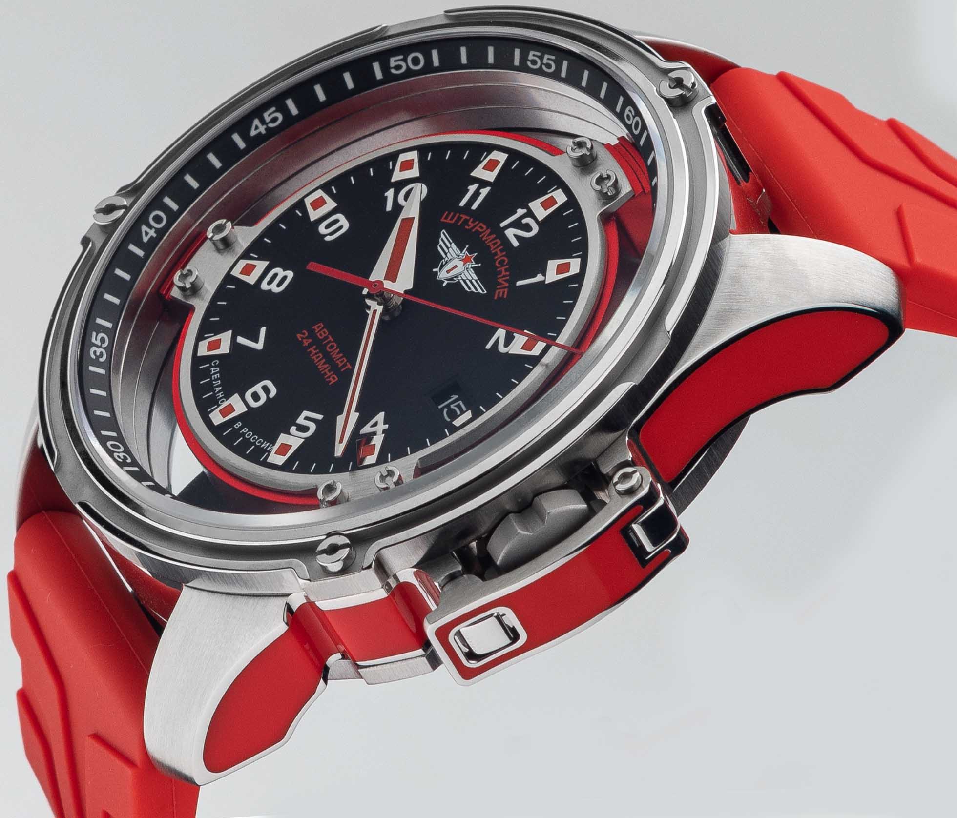 Штурманские мужские российские механические часы Штурманские Марс 2 NH35/9035978, механический механизм (автоматический калибр) с высокой точностью. Сапфировое стеклоСапфировое стеклоПрочный и надёжный материал из кристалла сапфира синтетического происхождения, характеризующийся особой твёрдостью и устойчивостью к царапинам и повреждениям. устойчивое к появлению царапин, обладающее высокой прозрачностью. Класс водозащиты: 50 метров, позволит защитить корпус от случайных брызг или капель дождя. Корпус часов изготовлен из стали. Силиконовый ремешок на стандартной застёжке. Стрелки и метки с люминесцентным покрытиемЛюминесцентное покрытиеПозволяет считывать показания времени в темноте. Производители наносят на стрелки, часовые индексы, безель или поверхность циферблата светонакопительный состав, дающий холодное свечение.. Они защищены от влаги и вибрации, оснащены надежным японским калибром NH35 Seiko с автоматическим подзаводом и запасом хода 41 час. Боковые поверхности корпуса покрыты эмалью ручной работы. Заводная головка дополнительно защищена от попадания влаги. Амортизаторы между корпусом и механизмом защищают калибр от вибрации.