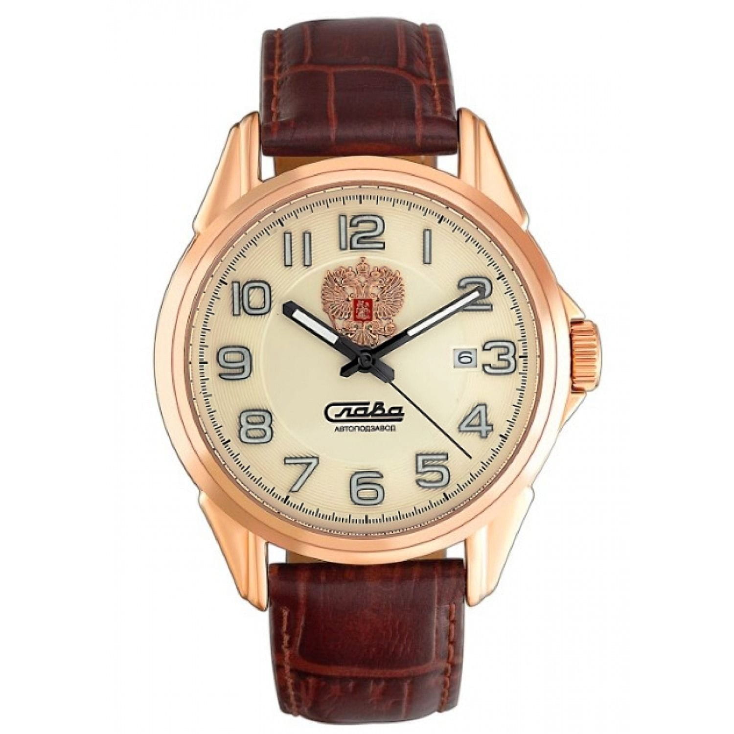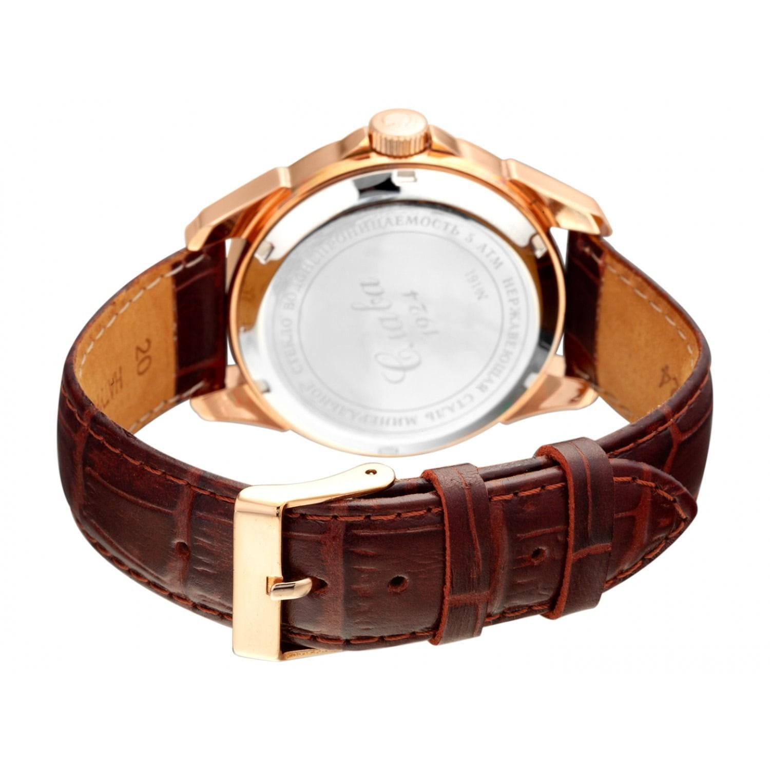 Российские механические часы Слава Традиция 1613839/300-8215, которые поддерживаются автоподзаводом, созданы для тех, кто ценит стиль и надежность. Корпус часов изготовлен из стали с IP-покрытиемIP-покрытиеМетод ионного напыления. Демонстрирует повышенную устойчивость к истиранию, окислению и химическим веществам. Под воздействием высокого давления и температуры около 1500°C молекулы металла надёжно соединяются с частицами корпуса часов., что придает им дополнительную стойкость и элегантный вид. Белый циферблат украшен гербом России, добавляя патриотичную нотку и эксклюзивность. Стрелки с люминесцентным покрытиемЛюминесцентное покрытиеПозволяет считывать показания времени в темноте. Производители наносят на стрелки, часовые индексы, безель или поверхность циферблата светонакопительный состав, дающий холодное свечение. облегчают чтение времени даже в условиях слабого освещения. Минеральное стеклоМинеральное стеклоМинеральное стекло представляет собой искусственно выращенный минерал кварца. Такое стекло отличается особой устойчивостью к повреждениям и царапинам. Уступает по некоторым качествам сапфировому стеклу. с сапфировым напылением защищает циферблат от царапин и повреждений, сохраняя идеальный внешний вид на протяжении долгого времени. Часы также имеют календарь с окошком даты на 3 часах и водозащиту до 50WR, что делает их надежными в различных условиях. Текстурированный кожаный ремешок с классической застежкой завершает этот изысканный образ. Текстурированный кожаный ремешок с классической застежкой завершает этот изысканный образ.