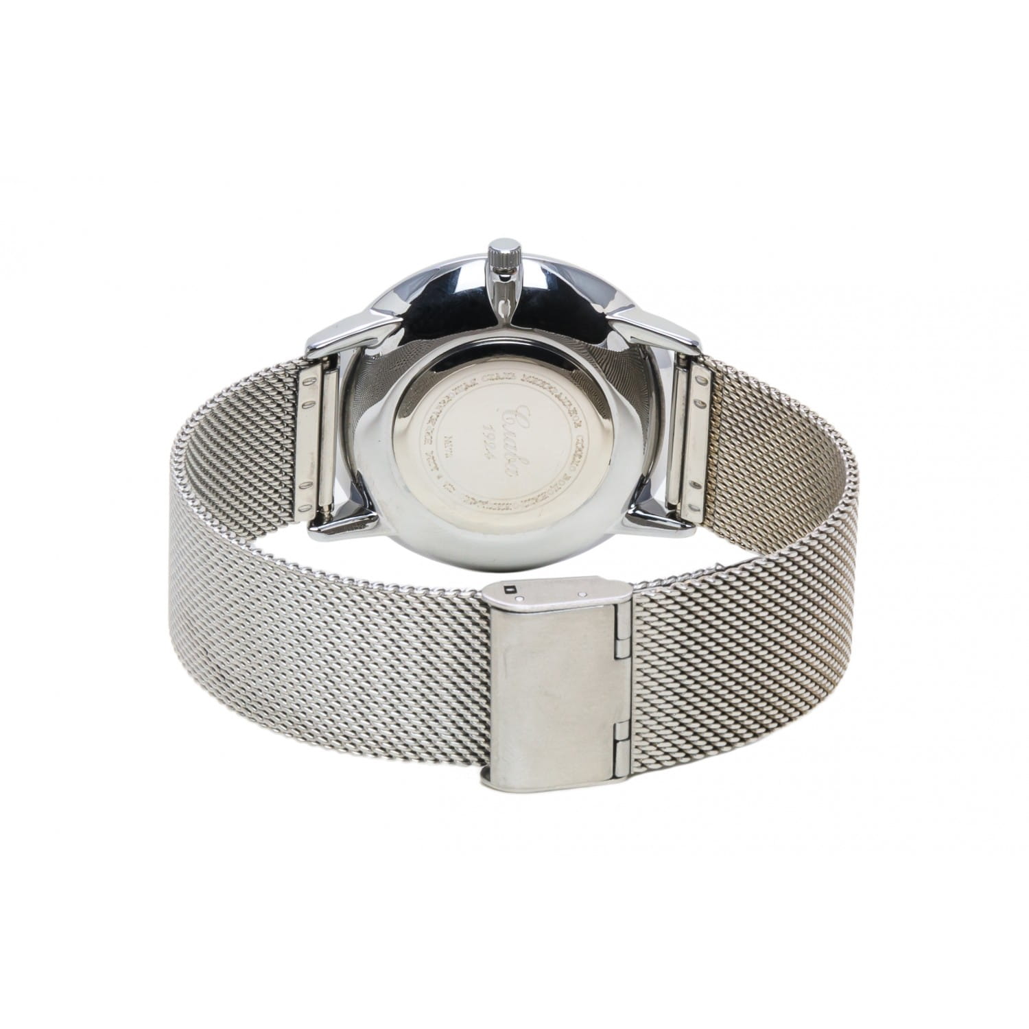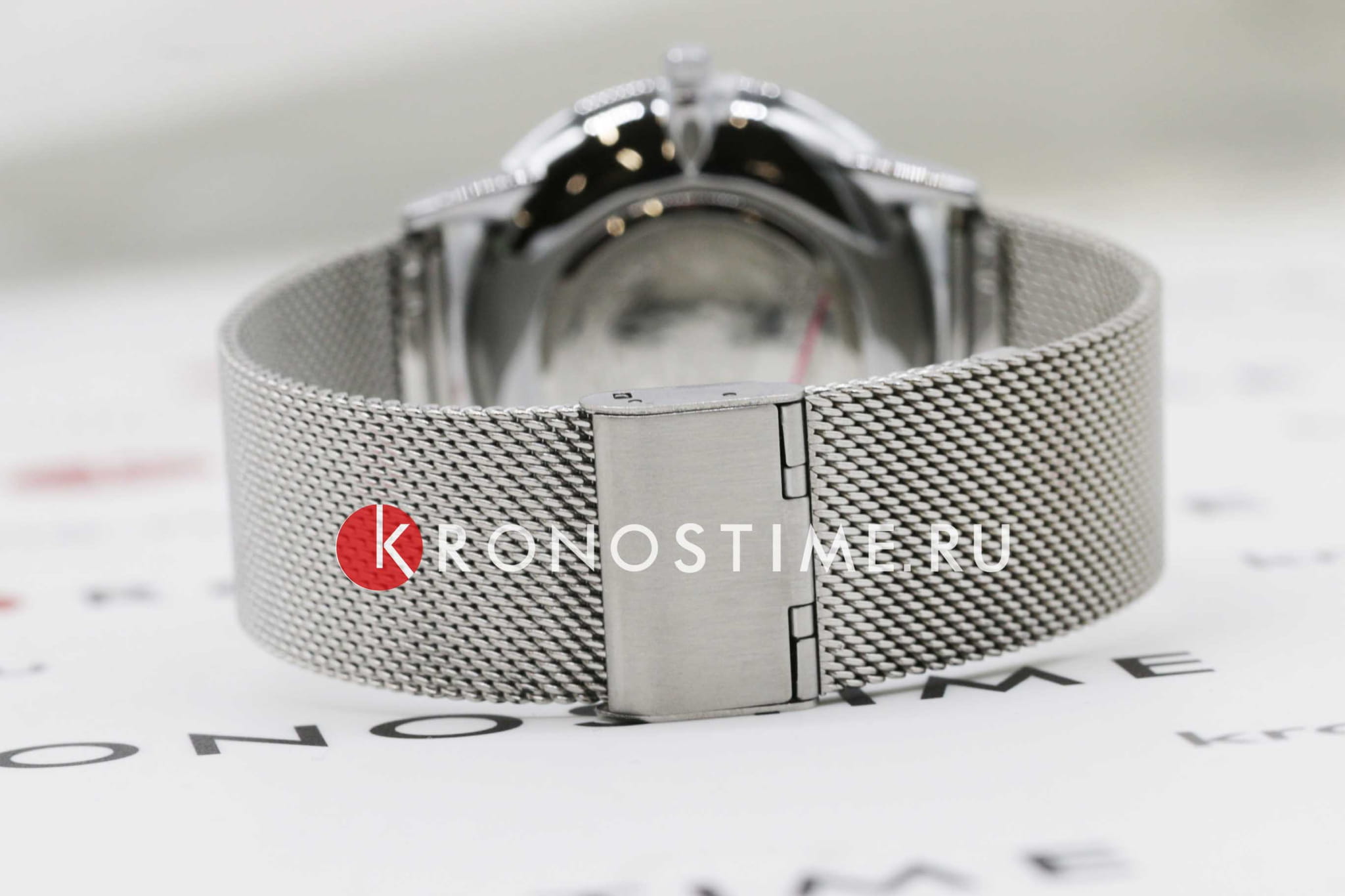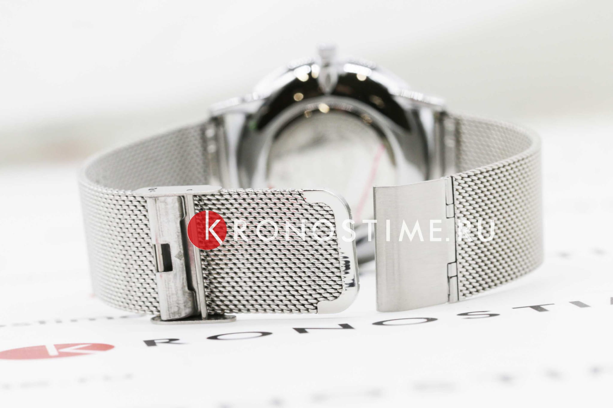 Класс водозащиты часов составляет 30 метров, что позволяет защитить корпус от случайных брызг и капель дождя.Стальной браслет миланского плетения на раскладном замкеРаскладной замокДанный вариант застежки используется только на часах с металлическим браслетом. Отличительная особенность такого крепления в том, что длина браслета становится универсальной и вы можете самостоятельно отрегулировать нужный вам размер – застежка просто двигается по браслету часов.. Эти часы идеально подойдут для повседневного использования, сочетая в себе стиль, надежность и функциональность.