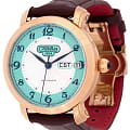 Наручные часы Слава Слава России 2443617/300-2427 — воплощение классического стиля и исключительного качества, произведенные в России. Эта модель из лимитированной коллекции, выпущенной в количестве всего 300 экземпляров, станет великолепным дополнением к вашему образу. Часы оснащены надежным механическим механизмом "Слава 2427" с автоподзаводом, обеспечивающим точный ход и оснащены двойным календарем, что позволяет всегда быть в курсе текущей даты. Корпус из нержавеющей стали с золотистым PVDPVDУльтратонкое покрытие наносится в технике вакуумного напыления, сочетает в себе нитрид титана особой прочности со слоем золота или оксида хрома. Несёт в себе декоративную или защитную функцию. покрытием диаметром 41 мм и толщиной 14,2 мм отличается высокой прочностью и водозащитой до 5 ATM. Серебристо-бирюзовый циферблат с арабскими цифрами защищен сапфировым стекломСапфировое стеклоПрочный и надёжный материал из кристалла сапфира синтетического происхождения, характеризующийся особой твёрдостью и устойчивостью к царапинам и повреждениям., устойчивым к царапинам, что позволяет надолго сохранить безупречный вид часов. На 3 часах расположено окошко с указателем даты и дня недели. Кожаный ремень из крокодила с застежкой «бабочка»Застёжка "бабочка"Такой вид застёжки дополняется предохранителями, помогающими избежать случайного раскрытия браслета. Обладают изящным исполнением. добавляет элегантности и комфорта, создавая ощущение роскоши и изысканности. Эта модель станет идеальным выбором для тех, кто ценит традиции и высокое качество в сочетании с современным дизайном.