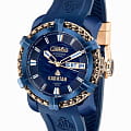 Российские механические наручные часы Слава Капитан 2473355/800-2427 — идеальный выбор для мужчин, ценящих стиль и надежность. Эта уникальная модель выпущена ограниченной серией в 500 экземпляров и сочетает в себе модный дизайн и высокое качество исполнения. Корпус часов выполнен из прочной стали с синим IP-покрытиемIP-покрытиеМетод ионного напыления. Демонстрирует повышенную устойчивость к истиранию, окислению и химическим веществам. Под воздействием высокого давления и температуры около 1500°C молекулы металла надёжно соединяются с частицами корпуса часов. и имеет диаметр 44 мм и толщину 16 мм, что придает им солидный и мужественный вид. БезельБезельВнешний ободок, закрепляющий стекло. В спортивных часах так называется поворотное кольцо с делениями на циферблате, выполняет роль таймера – замеряет отрезки времени на шкале. Неподвижный безель – элемент декора. Однонаправленно вращающийся безель на дайверских часах позволяет фиксировать моменты погружения и выныривания на поверхность. часов с IP-покрытиемIP-покрытиеМетод ионного напыления. Демонстрирует повышенную устойчивость к истиранию, окислению и химическим веществам. Под воздействием высокого давления и температуры около 1500°C молекулы металла надёжно соединяются с частицами корпуса часов. покрытием сине-золотого цвета, выполненный в форме штурвала под стать названию коллекции "Капитан", придаёт часам неповторимый морской характер и стиль. Водозащита до 20 ATM позволяет использовать часы даже при погружении в воду, что делает их отличным выбором для активных мужчин. Синий циферблат с метками и сапфировое стеклоСапфировое стеклоПрочный и надёжный материал из кристалла сапфира синтетического происхождения, характеризующийся особой твёрдостью и устойчивостью к царапинам и повреждениям. обеспечивают долговечность и устойчивость к царапинам. Механический механизм "Слава 2427" с автоподзаводом и возможностью ручного подзавода гарантирует точность и надежность, а двойной календарь добавляет функциональности. На 3 часах расположено окошко с указателем даты и дня недели. Часы комплектуются прочным силиконовым ремешком со стандартной застежкой, обеспечивающим комфорт и надежную фиксацию на запястье. Задняя крышка крепится на 4-х винтах и украшена объемным изображением якоря. Индивидуальный серийный номер. Упакованы в стильную подарочную коробку из экокожи, они станут отличным подарком для любого особого случая. С часами Слава из коллекции Капитан вы подчеркнете свой статус и вкус, оставаясь верным российским традициям качества и стиля.
