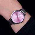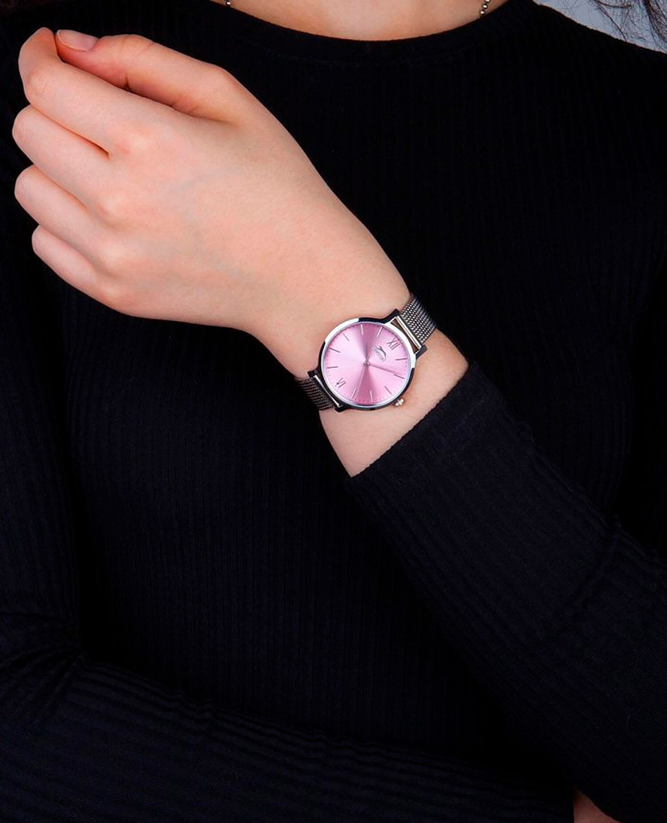 Женские наручные часы Slazenger SL.09.1823.2.07 из коллекции Essentials сочетают в себе элегантный дизайн и практичность современных технологий. Модель обладает круглым корпусом диаметром 34 мм, изготовленным из нержавеющей стали с серебряным покрытием, что обеспечивает высокую устойчивость к внешним воздействиям. Браслет миланского плетения с застежкой раскладной замокРаскладной замокДанный вариант застежки используется только на часах с металлическим браслетом. Отличительная особенность такого крепления в том, что длина браслета становится универсальной и вы можете самостоятельно отрегулировать нужный вам размер – застежка просто двигается по браслету часов., гарантирующей комфортное ношение и безопасность. Розовый циферблат делает модель особенно женственной и привлекательной. Для защиты используется минеральное стеклоМинеральное стеклоМинеральное стекло представляет собой искусственно выращенный минерал кварца. Такое стекло отличается особой устойчивостью к повреждениям и царапинам. Уступает по некоторым качествам сапфировому стеклу., обеспечивающее прочную защиту от царапин. Часы работают на японском кварцевом механизме, что гарантирует точное время без необходимости подзаводки. Водонепроницаемость часов составляет 3 атмосферы (30 метров), что позволяет использовать их в повседневной жизни, но не рекомендуется для плавания или водных видов спорта.