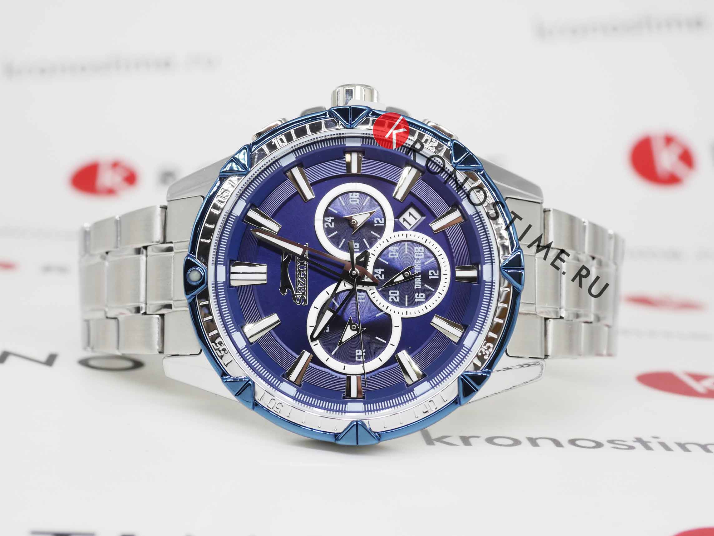 Мужские наручные часы Slazenger SL.09.2035.2.02 сочетают в себе классический дизайн и надежность современных технологий. Модель обладает круглым корпусом диаметром 46 мм, изготовленным из материала supermetal с серебряным покрытием, что обеспечивает высокую устойчивость к внешним воздействиям. БезельБезельВнешний ободок, закрепляющий стекло. В спортивных часах так называется поворотное кольцо с делениями на циферблате, выполняет роль таймера – замеряет отрезки времени на шкале. Неподвижный безель – элемент декора. Однонаправленно вращающийся безель на дайверских часах позволяет фиксировать моменты погружения и выныривания на поверхность. с IP-покрытиемIP-покрытиеМетод ионного напыления. Демонстрирует повышенную устойчивость к истиранию, окислению и химическим веществам. Под воздействием высокого давления и температуры около 1500°C молекулы металла надёжно соединяются с частицами корпуса часов.. Браслет выполнен из суперметалла с раскладной застежкойРаскладной замокДанный вариант застежки используется только на часах с металлическим браслетом. Отличительная особенность такого крепления в том, что длина браслета становится универсальной и вы можете самостоятельно отрегулировать нужный вам размер – застежка просто двигается по браслету часов., гарантирующей комфортное ношение и безопасность.