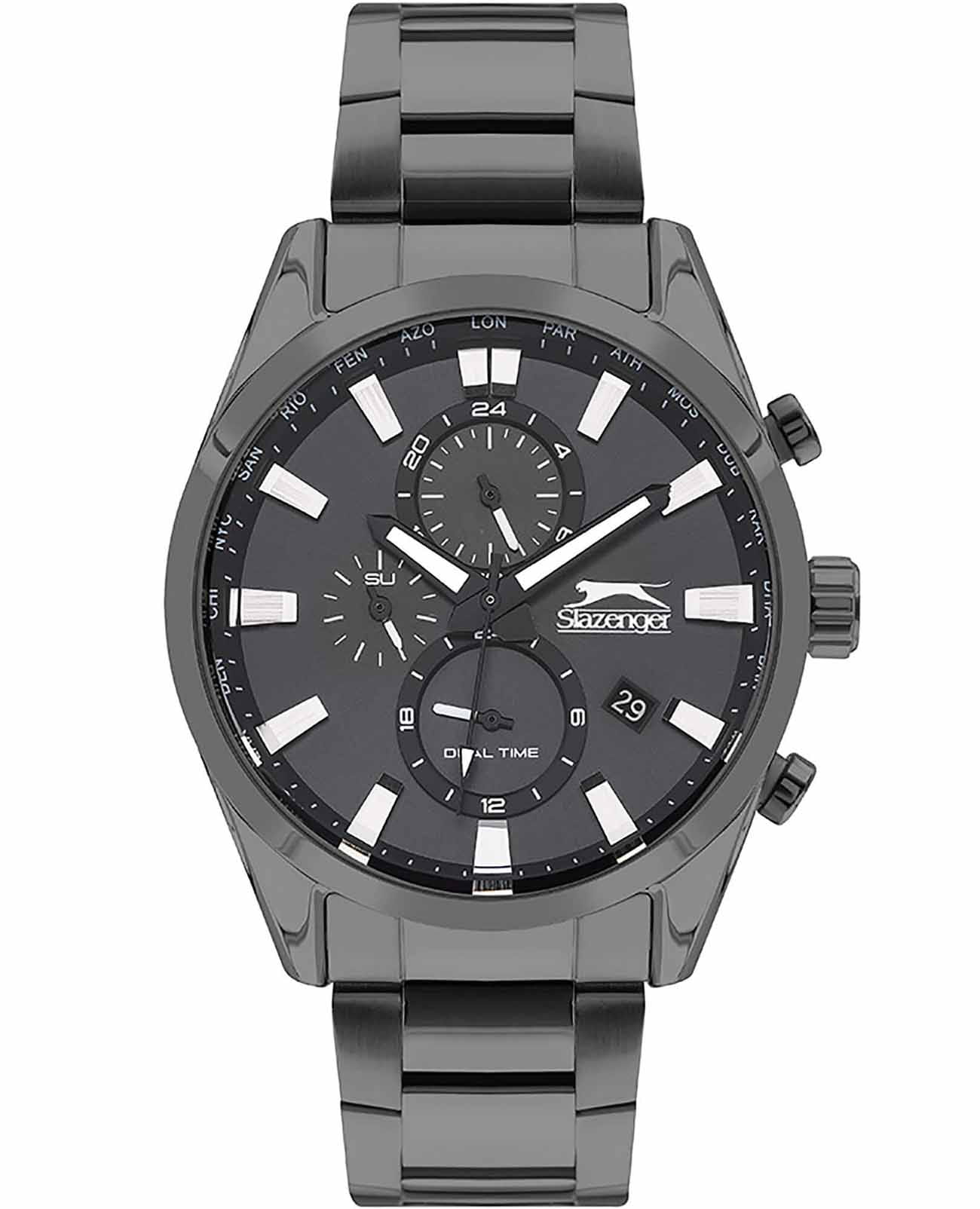 Часы Slazenger SL.09.2058.2.01 представляют собой стильное и функциональное дополнение к вашему образу. Их черный циферблат и корпус с безелемБезельВнешний ободок, закрепляющий стекло. В спортивных часах так называется поворотное кольцо с делениями на циферблате, выполняет роль таймера – замеряет отрезки времени на шкале. Неподвижный безель – элемент декора. Однонаправленно вращающийся безель на дайверских часах позволяет фиксировать моменты погружения и выныривания на поверхность. из суперметалла с IP-покрытиемIP-покрытиеМетод ионного напыления. Демонстрирует повышенную устойчивость к истиранию, окислению и химическим веществам. Под воздействием высокого давления и температуры около 1500°C молекулы металла надёжно соединяются с частицами корпуса часов. создают элегантный и современный вид, который подчеркнет вашу индивидуальность. Эти мужские часы оснащены кварцевым механизмом, обеспечивающим точность хода. Минеральное стеклоМинеральное стеклоМинеральное стекло представляет собой искусственно выращенный минерал кварца. Такое стекло отличается особой устойчивостью к повреждениям и царапинам. Уступает по некоторым качествам сапфировому стеклу. защищает циферблат от царапин, а люминесцентное покрытиеЛюминесцентное покрытиеПозволяет считывать показания времени в темноте. Производители наносят на стрелки, часовые индексы, безель или поверхность циферблата светонакопительный состав, дающий холодное свечение. на стрелках и метках позволяют легко считывать время даже в темноте. Функциональность часов дополнена вторым часовым поясомВторой часовой поясФункция, позволяющая отображать время двух часовых поясов одновременно., 24-часовым указателем времени, календарем даты в районе 4 часа и дня недели. Черный браслет из суперметалла с IP-покрытиемIP-покрытиеМетод ионного напыления. Демонстрирует повышенную устойчивость к истиранию, окислению и химическим веществам. Под воздействием высокого давления и температуры около 1500°C молекулы металла надёжно соединяются с частицами корпуса часов. и с раскладной застёжкойРаскладная застёжкаТакой тип застёжки используется только на браслетах из металла. Она никогда не раскрывается полностью, происходит разделение на 2 и более частей. Раскладывающая застёжка снизит вероятность потери часов к минимуму. гармонично дополняет общий дизайн. Размер корпуса составляет 45 мм в диаметре и 13 мм в толщину, что делает их удобными для повседневного ношения. А водозащита уровня 5 ATM делает их надежными спутниками даже в условиях повышенной влажности.