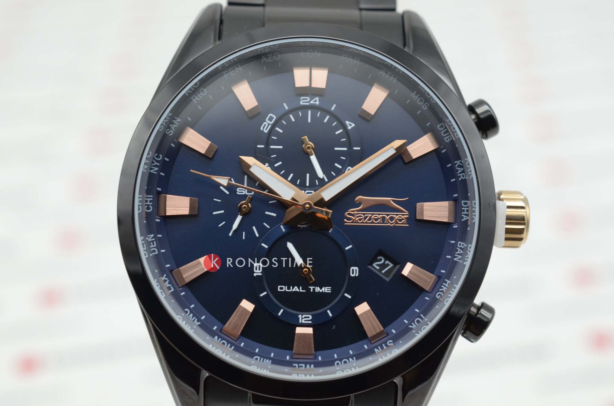 Мужские наручные часы Slazenger SL.09.2058.2.02 сочетают в себе классический дизайн и надежность современных технологий. Модель обладает круглым корпусом диаметром 45 мм, изготовленным из суперметалла с IP-покрытиемIP-покрытиеМетод ионного напыления. Демонстрирует повышенную устойчивость к истиранию, окислению и химическим веществам. Под воздействием высокого давления и температуры около 1500°C молекулы металла надёжно соединяются с частицами корпуса часов., что обеспечивает высокую устойчивость к внешним воздействиям. Браслет выполнен из металла с раскладной застежкой, гарантирующей комфортное ношение и безопасность. Циферблат синего цвета декорирован стрелками с люминесцентным покрытиемЛюминесцентное покрытиеПозволяет считывать показания времени в темноте. Производители наносят на стрелки, часовые индексы, безель или поверхность циферблата светонакопительный состав, дающий холодное свечение., которые обеспечивают читаемость времени даже в условиях недостаточной освещенности. Для защиты используется минеральное стеклоМинеральное стеклоМинеральное стекло представляет собой искусственно выращенный минерал кварца. Такое стекло отличается особой устойчивостью к повреждениям и царапинам. Уступает по некоторым качествам сапфировому стеклу., обеспечивающее прочную защиту от царапин. Часы работают на кварцевом механизме, что гарантирует точное время без необходимости подзаводки. Модель также оснащена функцией отображения второго часового пояса, делая её практичной для повседневного использования и путешествий. Водонепроницаемость часов достигает 5 атмосфер, что позволяет использовать их во время плавания, однако не рекомендуется для дайвинга или других водных видов спорта. Толщина корпуса составляет 13 мм. SL.09.2058.2.02 — это стильный аксессуар, который станет отличным дополнением как формального, так и casual образа мужчины.
