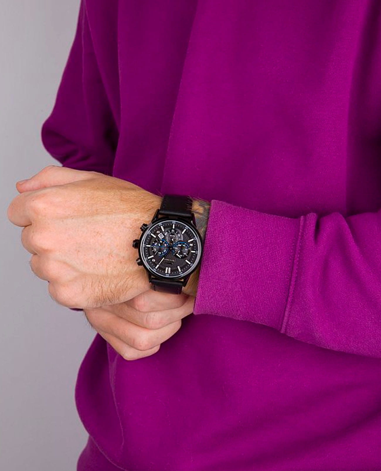 Мужские наручные часы Slazenger SL.09.2062.2.03 сочетают в себе классический дизайн и функциональность для повседневного использования. Модель обладает круглым корпусом диаметром 45 мм, изготовленным из суперметалла с IP-покрытиемIP-покрытиеМетод ионного напыления. Демонстрирует повышенную устойчивость к истиранию, окислению и химическим веществам. Под воздействием высокого давления и температуры около 1500°C молекулы металла надёжно соединяются с частицами корпуса часов., что обеспечивает высокую устойчивость к внешним воздействиям. Браслет выполнен из кожи на стандартной застежке, что гарантирует комфортное ношение. Черный циферблат украшен логотипом бренда и метками в виде штрихов; окошко даты находится между отметками 4 и 5 часов. Для защиты используется минеральное стеклоМинеральное стеклоМинеральное стекло представляет собой искусственно выращенный минерал кварца. Такое стекло отличается особой устойчивостью к повреждениям и царапинам. Уступает по некоторым качествам сапфировому стеклу., обеспечивающее прочную защиту от царапин. Часы работают на кварцевом механизме, что гарантирует точное время без необходимости подзаводки. Модель оснащена дополнительными функциями: индикатор второго часового поясаВторой часовой поясФункция, позволяющая отображать время двух часовых поясов одновременно., дня недели и текущего времени в 24-часовом формате, делая ее идеальной для путешествий и деловых встреч. Водонепроницаемость часов достигает 5 атмосфер (50 метров), что позволяет использовать их при легком контакте с водой, например, во время мытья рук, однако не рекомендуется для плавания или дайвинга. Стрелки и метки имеют люминесцентное покрытиеЛюминесцентное покрытиеПозволяет считывать показания времени в темноте. Производители наносят на стрелки, часовые индексы, безель или поверхность циферблата светонакопительный состав, дающий холодное свечение., обеспечивающее видимость в темноте.