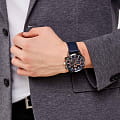 Мужские наручные часы Slazenger SL.09.2062.2.04 сочетают в себе классический дизайн и надежность современных технологий. Модель обладает круглым корпусом диаметром 45 мм, изготовленным из суперметалла с IP-покрытиемIP-покрытиеМетод ионного напыления. Демонстрирует повышенную устойчивость к истиранию, окислению и химическим веществам. Под воздействием высокого давления и температуры около 1500°C молекулы металла надёжно соединяются с частицами корпуса часов., что обеспечивает высокую устойчивость к внешним воздействиям. Браслет выполнен из кожи navy blue цвета с раскладной застежкой, гарантирующей комфортное ношение и безопасность. Циферблат серого цвета декорирован стрелками с люминесцентным покрытиемЛюминесцентное покрытиеПозволяет считывать показания времени в темноте. Производители наносят на стрелки, часовые индексы, безель или поверхность циферблата светонакопительный состав, дающий холодное свечение., которые обеспечивают читаемость времени даже в условиях недостаточной освещенности. Для защиты используется минеральное стеклоМинеральное стеклоМинеральное стекло представляет собой искусственно выращенный минерал кварца. Такое стекло отличается особой устойчивостью к повреждениям и царапинам. Уступает по некоторым качествам сапфировому стеклу., обеспечивающее прочную защиту от царапин. Часы работают на японском кварцевом механизме, что гарантирует точное время без необходимости подзаводки. Модель также оснащена функциями отображения второго часового пояса, дня недели и текущего времени в 24-часовом формате на малых циферблатах, делая её практичной для повседневного использования и путешествий. Водонепроницаемость часов достигает 5 атмосфер (WR50), что позволяет использовать их во время плавания, однако не рекомендуется для дайвинга или других водных видов спорта. Толщина корпуса составляет 12 мм . SL.09.2062.2.04 — это стильный аксессуар, который станет отличным дополнением как формального, так и casual образа мужчины.