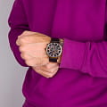 Мужские наручные часы Slazenger SL.09.2062.2.05 сочетают в себе классический дизайн и функциональность для повседневного использования. Модель обладает круглым корпусом диаметром 45 мм, изготовленным из суперметалла с IP-покрытиемIP-покрытиеМетод ионного напыления. Демонстрирует повышенную устойчивость к истиранию, окислению и химическим веществам. Под воздействием высокого давления и температуры около 1500°C молекулы металла надёжно соединяются с частицами корпуса часов., что обеспечивает высокую устойчивость к внешним воздействиям. Браслет выполнен из кожи черного цвета на стандартной застежке, что гарантирует комфортное ношение. Циферблат представлен в черном цвете и украшен логотипом бренда; метки выполнены в виде штрихов. Для защиты используется минеральное стеклоМинеральное стеклоМинеральное стекло представляет собой искусственно выращенный минерал кварца. Такое стекло отличается особой устойчивостью к повреждениям и царапинам. Уступает по некоторым качествам сапфировому стеклу., обеспечивающее прочную защиту от царапин. Стрелки и метки имеют люминесцентное покрытиеЛюминесцентное покрытиеПозволяет считывать показания времени в темноте. Производители наносят на стрелки, часовые индексы, безель или поверхность циферблата светонакопительный состав, дающий холодное свечение., что позволяет легко читать время даже в условиях недостаточной освещенности. Часы работают на японском кварцевом механизме, который обеспечивает высокую точность хода без необходимости подзаводки. Модель также оснащена дополнительными функциями: индикатор дня недели, даты и времени в 24-часовом формате, а также функцией второго часового поясаВторой часовой поясФункция, позволяющая отображать время двух часовых поясов одновременно., делая ее идеальной для путешествий и деловых встреч. Водонепроницаемость часов достигает 5 атмосфер (50 метров), что позволяет использовать их при легком контакте с водой, например, во время мытья рук, однако не рекомендуется для плавания или дайвинга.