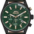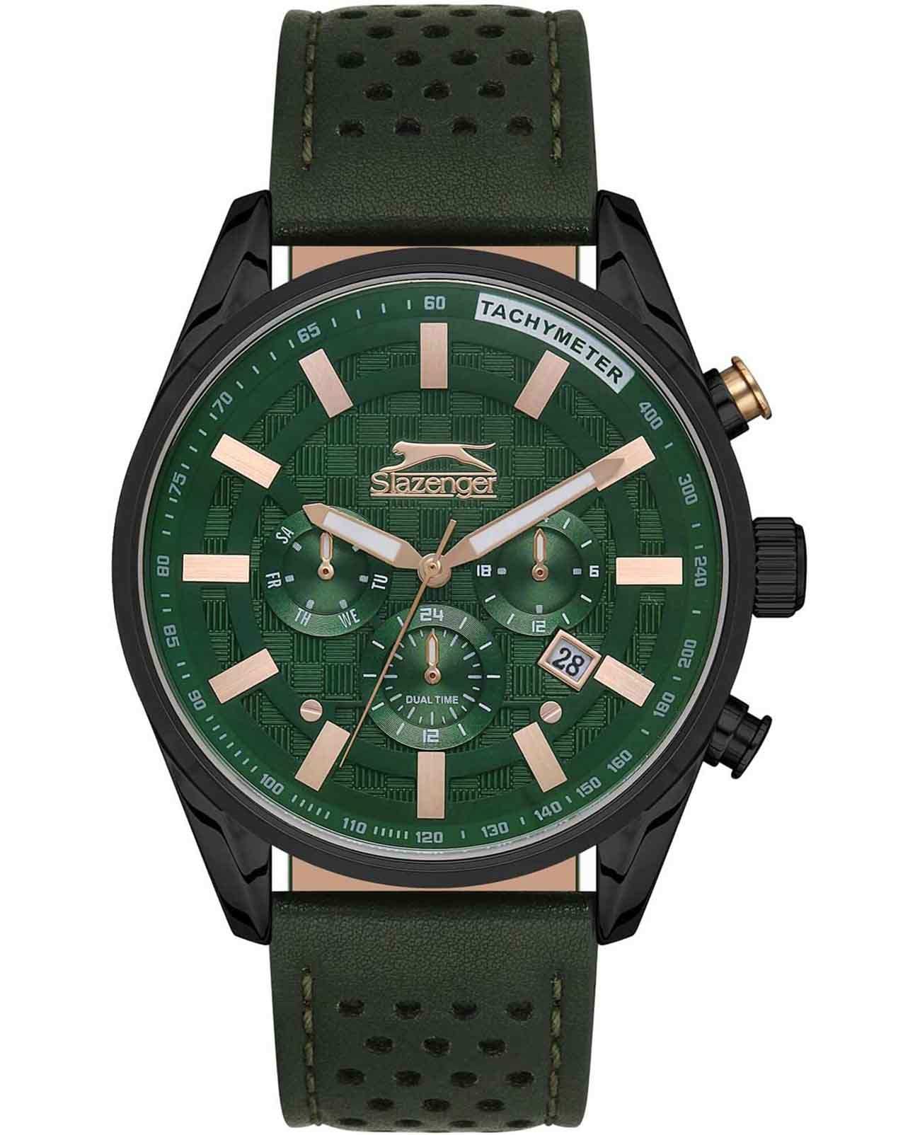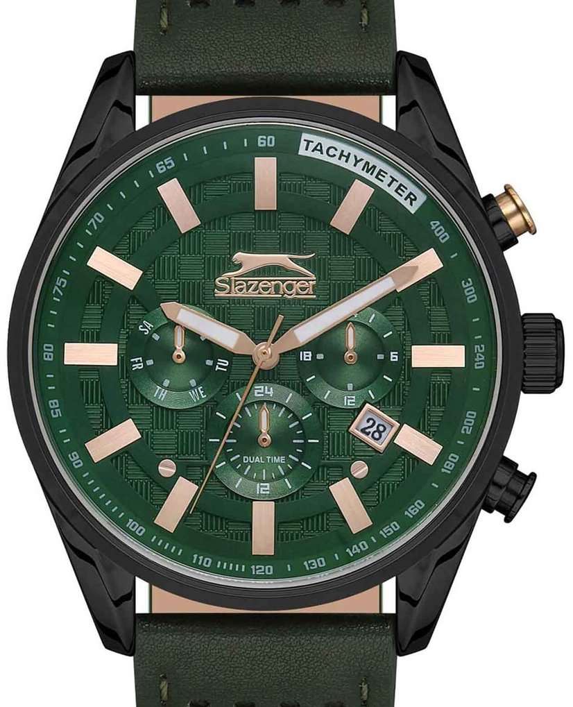Мужские часы Slazenger SL.09.2096.2.04 — это воплощение элегантности и надежности, идеальные для современного мужчины. Зеленый циферблат, обрамленный черным корпусом и таким же безелемБезельВнешний ободок, закрепляющий стекло. В спортивных часах так называется поворотное кольцо с делениями на циферблате, выполняет роль таймера – замеряет отрезки времени на шкале. Неподвижный безель – элемент декора. Однонаправленно вращающийся безель на дайверских часах позволяет фиксировать моменты погружения и выныривания на поверхность. из суперметалла с IP-покрытиемIP-покрытиеМетод ионного напыления. Демонстрирует повышенную устойчивость к истиранию, окислению и химическим веществам. Под воздействием высокого давления и температуры около 1500°C молекулы металла надёжно соединяются с частицами корпуса часов., привлекает внимание своим современным дизайном. Кварцевый механизм гарантирует безупречную точность. Черный кожаный браслет с комфортной посадкой подчеркивает классический стиль и добавляет изысканности. Минеральное стеклоМинеральное стеклоМинеральное стекло представляет собой искусственно выращенный минерал кварца. Такое стекло отличается особой устойчивостью к повреждениям и царапинам. Уступает по некоторым качествам сапфировому стеклу. защищает часы от повреждений, а люминесцентное покрытиеЛюминесцентное покрытиеПозволяет считывать показания времени в темноте. Производители наносят на стрелки, часовые индексы, безель или поверхность циферблата светонакопительный состав, дающий холодное свечение. на стрелках и метках обеспечивает отличную видимость даже в условиях недостаточного освещения. Эти часы оснащены множеством полезных функций, включая 24-часовой указатель времени, второй часовой поясВторой часовой поясФункция, позволяющая отображать время двух часовых поясов одновременно., индикаторы даты и дня недели, а также тахиметрТахиметрРазмеченная шкала, располагается на ободке или безеле часов. Тахиметр позволяет рассчитать скорость на определённом участке пути, расстояние измеряется в километрах или милях. для измерения скорости. А водозащита до 5 ATM позволяет не беспокоиться о случайных попаданиях воды.