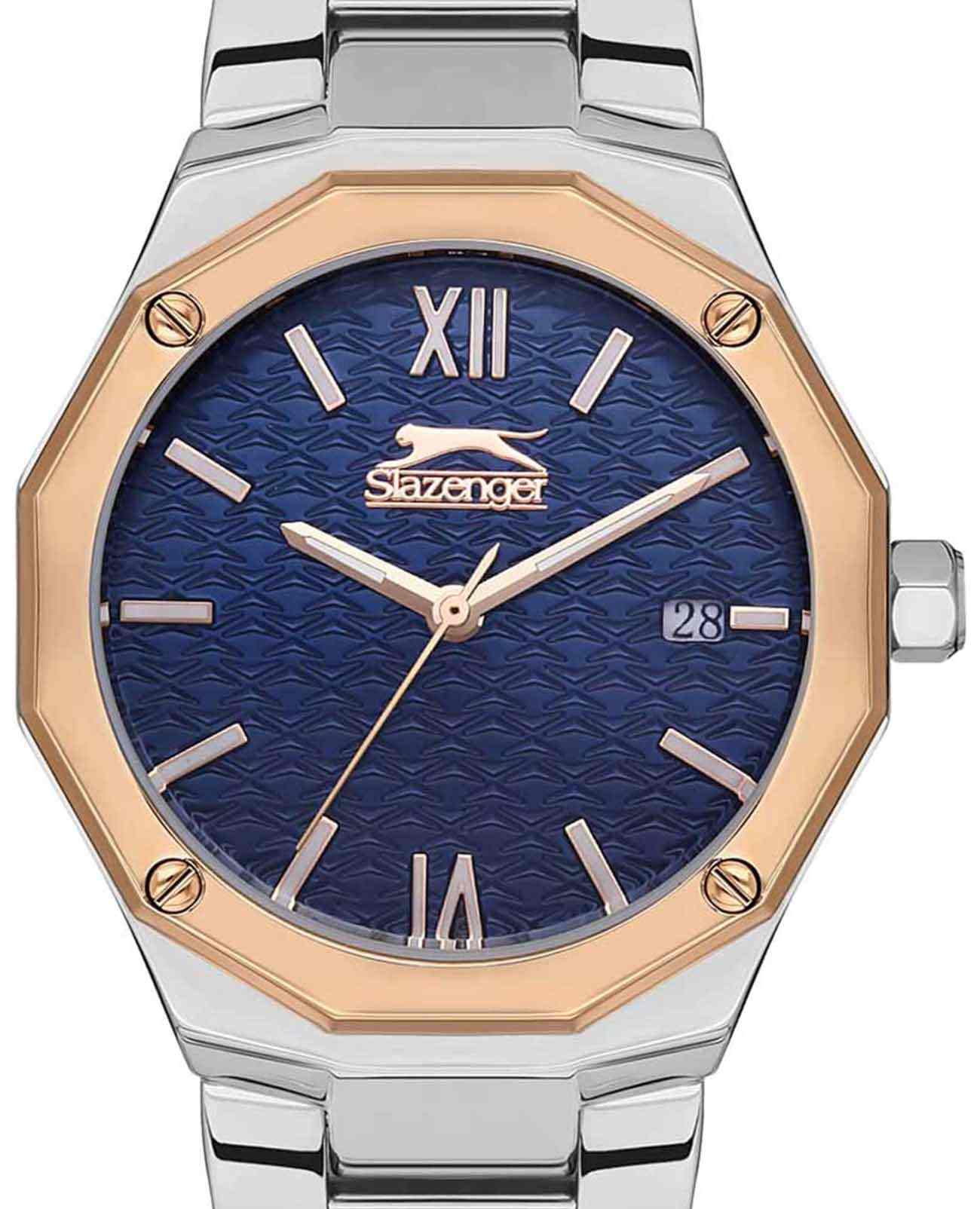Часы Slazenger SL.09.2149.3.05 — это изящное сочетание классического стиля и современных технологий. Эти женские кварцевые часы привлекают внимание своим синим циферблатом, который украшен декоративным рисунком и логотипом бренда. Метки в виде штрихов и римских цифр VI и XII придают циферблату элегантность и читаемость. Окошко даты удобно расположено в положении 3 часа, что позволяет легко следить за числом. Корпус диаметром 34 мм выполнен из суперметалла, который отличается повышенной прочностью. Толщина корпуса составляет 10 мм, что делает часы утонченными и удобными для повседневного ношения. Двенадцатигранный безельБезельВнешний ободок, закрепляющий стекло. В спортивных часах так называется поворотное кольцо с делениями на циферблате, выполняет роль таймера – замеряет отрезки времени на шкале. Неподвижный безель – элемент декора. Однонаправленно вращающийся безель на дайверских часах позволяет фиксировать моменты погружения и выныривания на поверхность. с розово-золотистым IP-покрытиемIP-покрытиеМетод ионного напыления. Демонстрирует повышенную устойчивость к истиранию, окислению и химическим веществам. Под воздействием высокого давления и температуры около 1500°C молекулы металла надёжно соединяются с частицами корпуса часов. прикреплен на 4 винтах. Люминесцентное покрытиеЛюминесцентное покрытиеПозволяет считывать показания времени в темноте. Производители наносят на стрелки, часовые индексы, безель или поверхность циферблата светонакопительный состав, дающий холодное свечение. на стрелках обеспечивает отличную видимость в темноте. Металлический браслет с раскладной застёжкойРаскладная застёжкаТакой тип застёжки используется только на браслетах из металла. Она никогда не раскрывается полностью, происходит разделение на 2 и более частей. Раскладывающая застёжка снизит вероятность потери часов к минимуму., что обеспечивает надежную фиксацию на запястье и комфорт при носке. Минеральное стеклоМинеральное стеклоМинеральное стекло представляет собой искусственно выращенный минерал кварца. Такое стекло отличается особой устойчивостью к повреждениям и царапинам. Уступает по некоторым качествам сапфировому стеклу. надежно защищает циферблат от царапин и других повреждений, а водозащита на уровне 30WR позволяет не беспокоиться о случайных брызгах воды. Шестигранная заводная головка добавляет оригинальности и удобства в управлении настройками. Эти часы станут прекрасным аксессуаром для женщин, ценящих классический дизайн, качество и надежность, которые не подвластны скоротечным модным тенденциям.