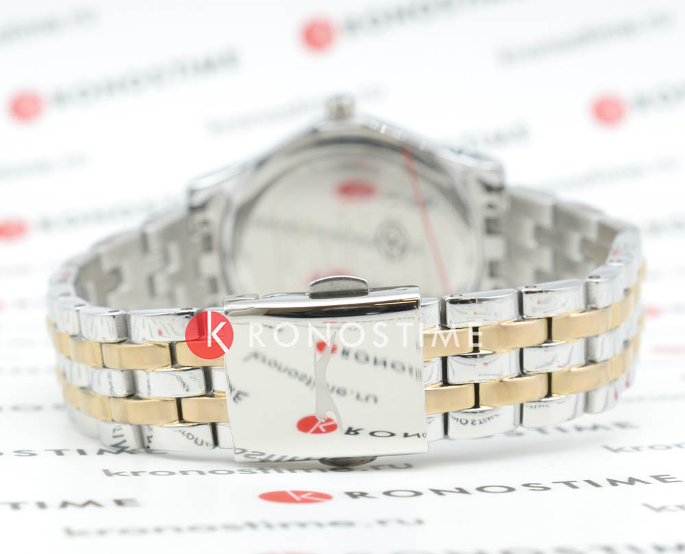 Женские наручные часы Slazenger SL.09.2154.3.02 сочетают в себе классический дизайн и надежность современных технологий. Модель обладает круглым корпусом диаметром 32 мм, изготовленным из суперметалла, что обеспечивает высокую устойчивость к внешним воздействиям. Индексы украшены фианитами. Браслет выполнен из суперметалла с IP-покрытиемIP-покрытиеМетод ионного напыления. Демонстрирует повышенную устойчивость к истиранию, окислению и химическим веществам. Под воздействием высокого давления и температуры около 1500°C молекулы металла надёжно соединяются с частицами корпуса часов. и раскладной застежкойРаскладной замокДанный вариант застежки используется только на часах с металлическим браслетом. Отличительная особенность такого крепления в том, что длина браслета становится универсальной и вы можете самостоятельно отрегулировать нужный вам размер – застежка просто двигается по браслету часов., гарантирующей комфортное ношение и безопасность. Циферблат перламутрового черного цвета декорирован золотистыми стрелками и индексами, которые обеспечивают читаемость времени даже в условиях недостаточной освещенности. Для защиты используется минеральное стеклоМинеральное стеклоМинеральное стекло представляет собой искусственно выращенный минерал кварца. Такое стекло отличается особой устойчивостью к повреждениям и царапинам. Уступает по некоторым качествам сапфировому стеклу., обеспечивающее прочную защиту от царапин. Часы работают на кварцевом механизме, что гарантирует точное время без необходимости подзаводки. Водонепроницаемость часов достигает 3 атмосфер, что позволяет использовать их при мытье рук или хождении под мелким дождем, однако не рекомендуется для плавания или других водных видов спорта. Вес модели составляет 80 грамма.