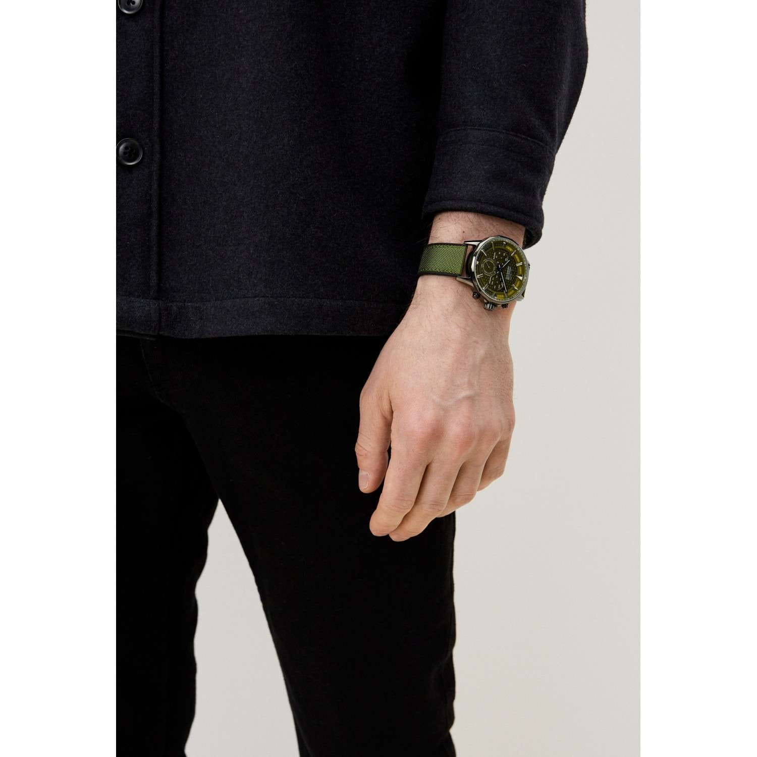 Стильные мужские наручные часы Slazenger SL.09.2217.2.03 станут идеальным аксессуаром для современного мужчины. Этот британский бренд славится своим качеством и надежностью, а данная модель не является исключением. Часы оснащены кварцевым механизмом, что обеспечивает точность хода и долговечность использования. Корпус часов выполнен из металла с черным IP-покрытиемIP-покрытиеМетод ионного напыления. Демонстрирует повышенную устойчивость к истиранию, окислению и химическим веществам. Под воздействием высокого давления и температуры около 1500°C молекулы металла надёжно соединяются с частицами корпуса часов., а прочное минеральное стеклоМинеральное стеклоМинеральное стекло представляет собой искусственно выращенный минерал кварца. Такое стекло отличается особой устойчивостью к повреждениям и царапинам. Уступает по некоторым качествам сапфировому стеклу. защищает циферблат от царапин и повреждений. Элегантный зеленый тканевый ремешок на черном силиконовом основании с классической застежкой, что гарантирует комфортное ношение на запястье. Ширина браслета составляет 22 мм, что придает часам солидный вид. Диаметр корпуса равен 45 мм, а толщина 12 мм, что делает эту модель заметной, но в то же время не громоздкой. Водозащита уровня WR 50 позволяет использовать часы в повседневной жизни, не беспокоясь о случайных попаданиях воды. Стрелки снабжены люминесцентным покрытиемЛюминесцентное покрытиеПозволяет считывать показания времени в темноте. Производители наносят на стрелки, часовые индексы, безель или поверхность циферблата светонакопительный состав, дающий холодное свечение., что позволяет легко считывать время в темноте. Функциональные возможности часов включают отображение даты, дня недели и времени в 24-часовом формате на дополнительных малых циферблатах. Это делает модель не только стильной, но и практичной в использовании.
