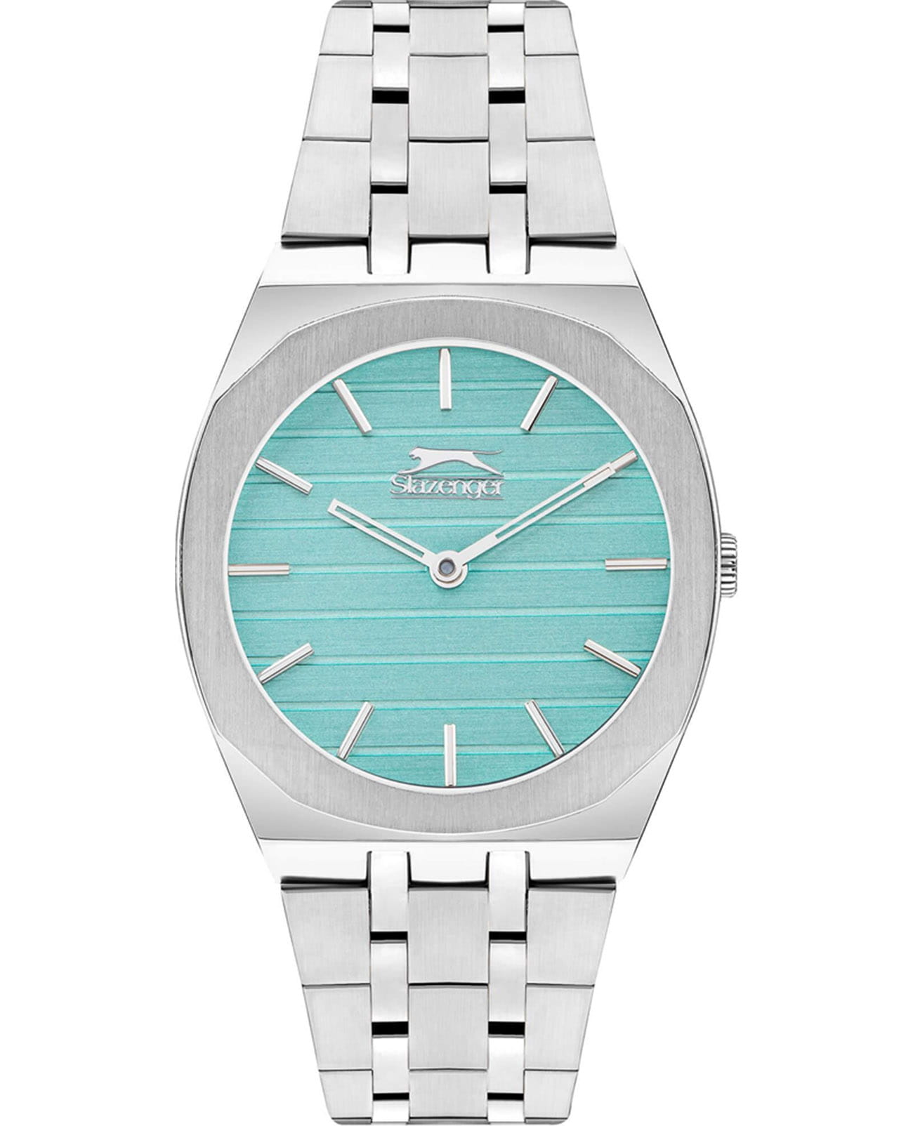 Женские кварцевые часы Slazenger SL.09.2311.3.09 — это элегантный и стильный аксессуар, идеально дополняющий любой образ. Корпус и браслет выполнены из суперметалла, защищён минеральным стекломМинеральное стеклоМинеральное стекло представляет собой искусственно выращенный минерал кварца. Такое стекло отличается особой устойчивостью к повреждениям и царапинам. Уступает по некоторым качествам сапфировому стеклу.. Циферблат бирюзового цвета оформлен в классическом стиле. Браслет из суперметалла фиксируется на раскладной застёжкеРаскладная застёжкаТакой тип застёжки используется только на браслетах из металла. Она никогда не раскрывается полностью, происходит разделение на 2 и более частей. Раскладывающая застёжка снизит вероятность потери часов к минимуму., обеспечивая удобство и надёжность ношения. Водонепроницаемость 30 м позволяет использовать часы в повседневных условиях, защищая от случайных брызг и капель дождя. Модель сочетает в себе лёгкость, прочность и изысканный внешний вид.