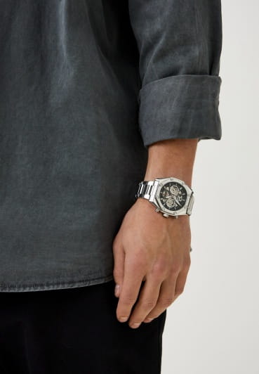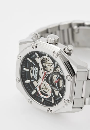 Мужские кварцевые часы Slazenger SL.09.2318.2.01 - это выразительный и функциональный аксессуар, сочетающий стиль, технологичность и насыщенную комплектацию. Корпус и браслет выполнены из суперметалла. Циферблат защищён минеральным стекломМинеральное стеклоМинеральное стекло представляет собой искусственно выращенный минерал кварца. Такое стекло отличается особой устойчивостью к повреждениям и царапинам. Уступает по некоторым качествам сапфировому стеклу. и частично скелетонизирован, что позволяет наблюдать за работой механизма, и дополнен вынесенными малыми циферблатами для индикации дня недели, даты и времени в 24-часовом формате. Стрелки и метки оснащены люминесцентным покрытиемЛюминесцентное покрытиеПозволяет считывать показания времени в темноте. Производители наносят на стрелки, часовые индексы, безель или поверхность циферблата светонакопительный состав, дающий холодное свечение., обеспечивающим хорошую читаемость в темноте. Браслет из суперметалла фиксируется на раскладной застёжкеРаскладная застёжкаТакой тип застёжки используется только на браслетах из металла. Она никогда не раскрывается полностью, происходит разделение на 2 и более частей. Раскладывающая застёжка снизит вероятность потери часов к минимуму., обеспечивая удобство и надёжность ношения. Водонепроницаемость 50 м позволяет использовать часы в повседневных условиях, защищая от случайных брызг и капель дождя. Модель подчёркивает индивидуальность владельца и идеально подходит как для повседневного, так и для делового образа.