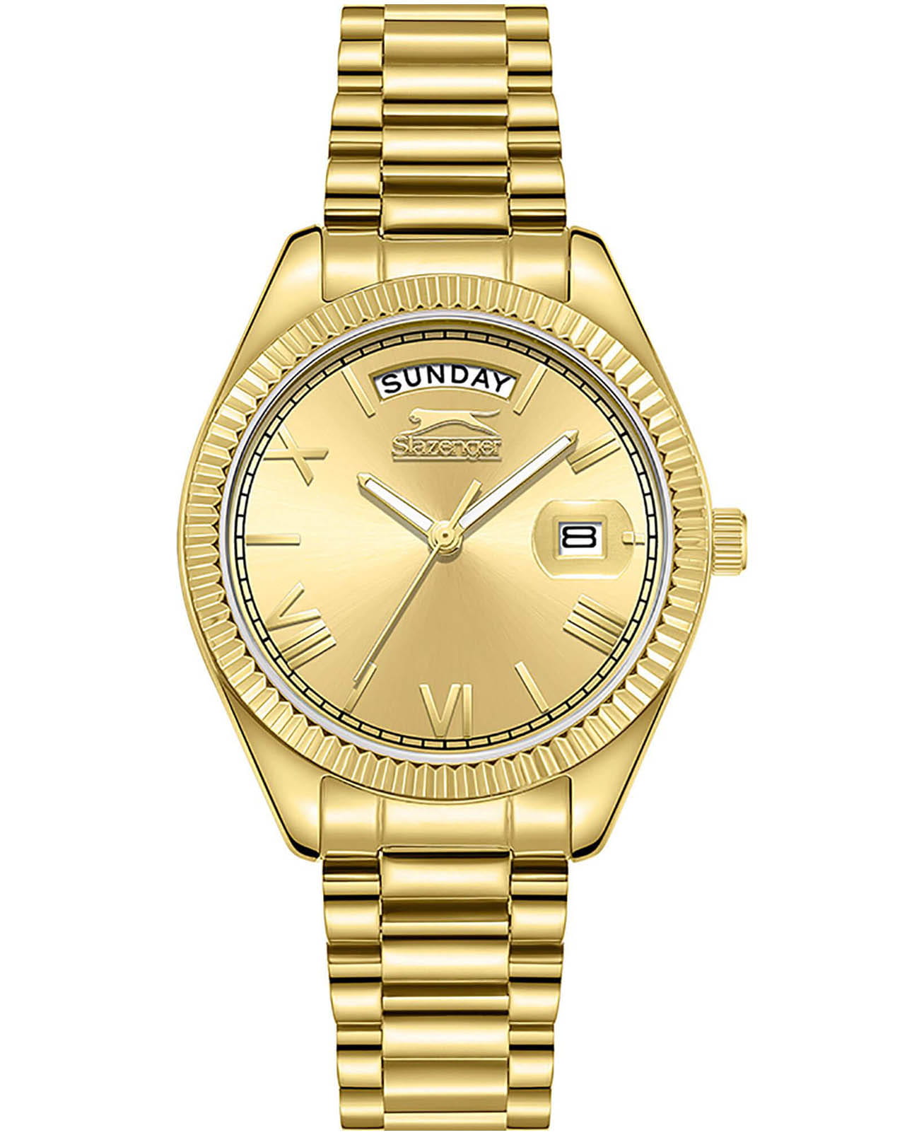 Женские элегантные наручные часы Slazenger SL.09.2338.4.09 сочетают в себе современный стиль и функциональность. Стильный корпус выполнен из суперметалла с IP-покрытиемIP-покрытиеМетод ионного напыления. Демонстрирует повышенную устойчивость к истиранию, окислению и химическим веществам. Под воздействием высокого давления и температуры около 1500°C молекулы металла надёжно соединяются с частицами корпуса часов., придающий модели дополнительную прочность и элегантный внешний вид. Изысканный циферблат защищён минеральным стекломМинеральное стеклоМинеральное стекло представляет собой искусственно выращенный минерал кварца. Такое стекло отличается особой устойчивостью к повреждениям и царапинам. Уступает по некоторым качествам сапфировому стеклу., устойчивым к царапинам и повреждениям. Водонепроницаемость 3 АТМ позволяет использовать часы в повседневных условиях — при мытье рук или под лёгким дождём. Браслет из суперметалла с IP-покрытиемIP-покрытиеМетод ионного напыления. Демонстрирует повышенную устойчивость к истиранию, окислению и химическим веществам. Под воздействием высокого давления и температуры около 1500°C молекулы металла надёжно соединяются с частицами корпуса часов. и с раскладной застёжкойРаскладная застёжкаТакой тип застёжки используется только на браслетах из металла. Она никогда не раскрывается полностью, происходит разделение на 2 и более частей. Раскладывающая застёжка снизит вероятность потери часов к минимуму., обеспечивающий надёжную фиксацию и комфорт при ношении. Окошко даты находится в положении 3 часа. Cтрелки покрыты люминесцентным покрытиемЛюминесцентное покрытиеПозволяет считывать показания времени в темноте. Производители наносят на стрелки, часовые индексы, безель или поверхность циферблата светонакопительный состав, дающий холодное свечение. для читаемости в условиях недостаточного освещения. Эта модель идеально подходит для женщин, ценящих стиль, функциональность и надёжность в одном аксессуаре.