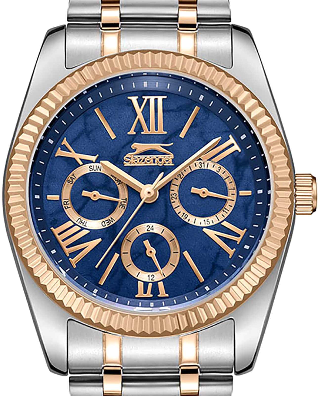 Женские кварцевые часы Slazenger SL.09.2343.4.05 – это сочетание элегантности, современного стиля и надёжности. Изящный корпус из суперметалла серебристого цвета, диаметром 36 мм и толщиной 10.5 мм, подчёркивает утончённость модели и делает их идеальным аксессуаром для любой ситуации – будь то деловая встреча, романтический вечер или повседневные выходы. Циферблат надёжно защищён минеральным стекломМинеральное стеклоМинеральное стекло представляет собой искусственно выращенный минерал кварца. Такое стекло отличается особой устойчивостью к повреждениям и царапинам. Уступает по некоторым качествам сапфировому стеклу., которое устойчиво к механическим повреждениям и сохраняет кристальную прозрачность. Рифленый неподвижный безельБезельВнешний ободок, закрепляющий стекло. В спортивных часах так называется поворотное кольцо с делениями на циферблате, выполняет роль таймера – замеряет отрезки времени на шкале. Неподвижный безель – элемент декора. Однонаправленно вращающийся безель на дайверских часах позволяет фиксировать моменты погружения и выныривания на поверхность. с IP-покрытиемIP-покрытиеМетод ионного напыления. Демонстрирует повышенную устойчивость к истиранию, окислению и химическим веществам. Под воздействием высокого давления и температуры около 1500°C молекулы металла надёжно соединяются с частицами корпуса часов. золотистого цвета. Браслет из суперметалла с частичным IP-покрытиемIP-покрытиеМетод ионного напыления. Демонстрирует повышенную устойчивость к истиранию, окислению и химическим веществам. Под воздействием высокого давления и температуры около 1500°C молекулы металла надёжно соединяются с частицами корпуса часов. удобно облегает запястье и фиксируется с помощью раскладной застёжкиРаскладная застёжкаТакой тип застёжки используется только на браслетах из металла. Она никогда не раскрывается полностью, происходит разделение на 2 и более частей. Раскладывающая застёжка снизит вероятность потери часов к минимуму., обеспечивая надёжность и комфорт в повседневном ношении. Утончённый стиль, внимание к деталям и практичность делают эту модель идеальным выбором для современных женщин, ценящих эстетику и функциональность. Вынесенный циферблат с 24-х часовым указателем времени. Водозащита до 30 метров позволит защитить корпус от случайных брызг или капель дождя.