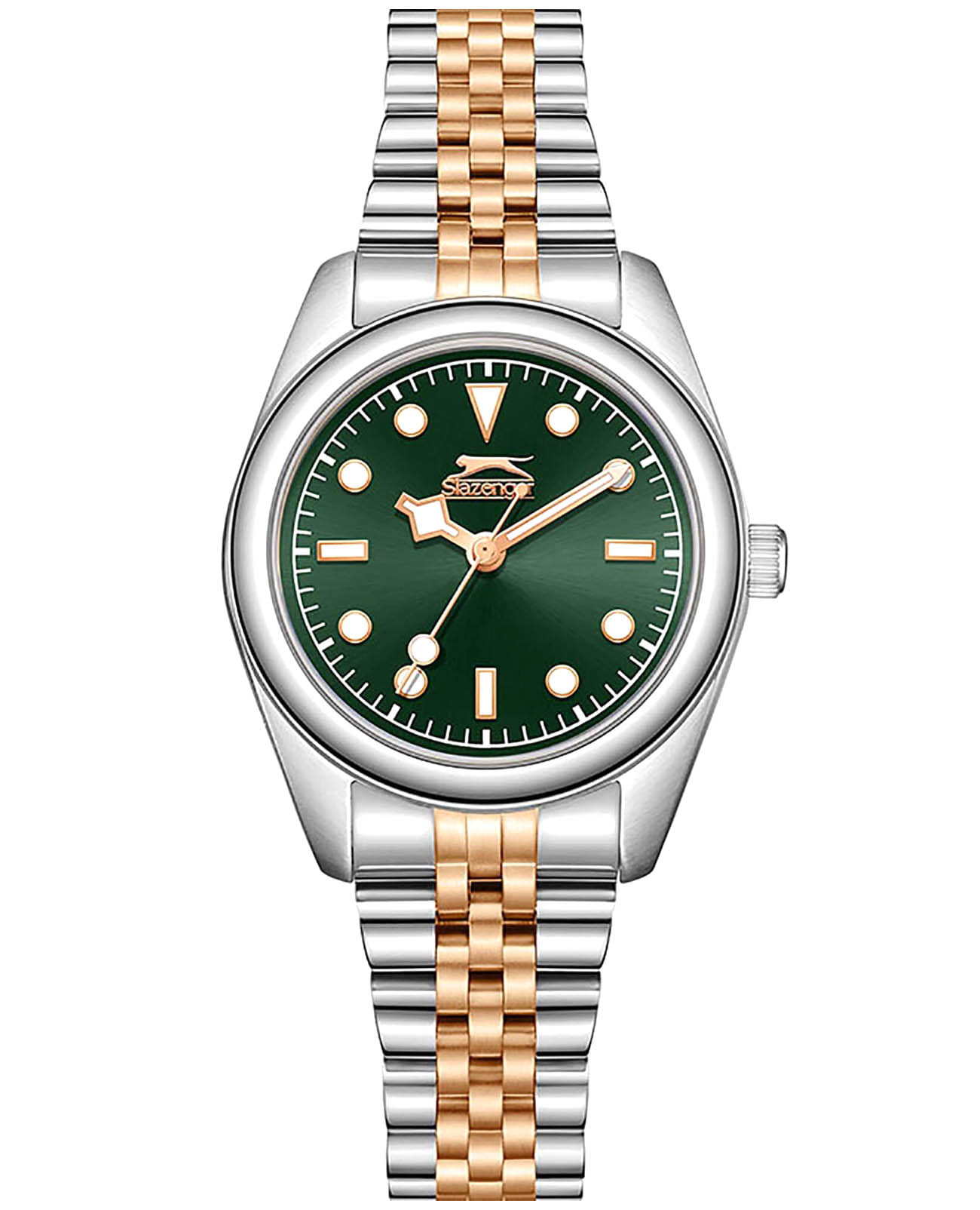 Женские кварцевые часы Slazenger SL.09.2355.3.05 – это сочетание элегантности, современного стиля и надёжности. Изящный корпус из суперметалла серебристого цвета, диаметром 31 мм и толщиной 10 мм, подчёркивает утончённость модели и делает их идеальным аксессуаром для любой ситуации – будь то деловая встреча, романтический вечер или повседневные выходы. Циферблат надёжно защищён минеральным стекломМинеральное стеклоМинеральное стекло представляет собой искусственно выращенный минерал кварца. Такое стекло отличается особой устойчивостью к повреждениям и царапинам. Уступает по некоторым качествам сапфировому стеклу., которое устойчиво к механическим повреждениям и сохраняет кристальную прозрачность. Браслет из суперметалла с IP-покрытиемIP-покрытиеМетод ионного напыления. Демонстрирует повышенную устойчивость к истиранию, окислению и химическим веществам. Под воздействием высокого давления и температуры около 1500°C молекулы металла надёжно соединяются с частицами корпуса часов. цвета розового золота удобно облегает запястье и фиксируется с помощью раскладной застёжкиРаскладная застёжкаТакой тип застёжки используется только на браслетах из металла. Она никогда не раскрывается полностью, происходит разделение на 2 и более частей. Раскладывающая застёжка снизит вероятность потери часов к минимуму., обеспечивая надёжность и комфорт в повседневном ношении. Утончённый стиль, внимание к деталям и практичность делают эту модель идеальным выбором для современных женщин, ценящих эстетику и функциональность. Стрелки и метки покрыты люминесцентным покрытиемЛюминесцентное покрытиеПозволяет считывать показания времени в темноте. Производители наносят на стрелки, часовые индексы, безель или поверхность циферблата светонакопительный состав, дающий холодное свечение., обеспечивающим отличную читаемость в темноте. Водозащита до 30 метров позволит защитить корпус от случайных брызг или капель дождя.