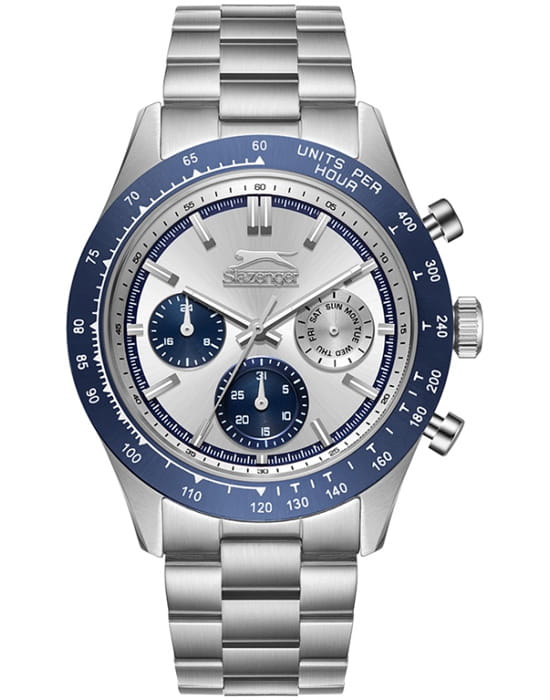 Slazenger SL.09.2358.2.05 — стильные мужские часы, сочетающие современный дизайн и функциональность. Корпус выполнен из суперметалла, а безельБезельВнешний ободок, закрепляющий стекло. В спортивных часах так называется поворотное кольцо с делениями на циферблате, выполняет роль таймера – замеряет отрезки времени на шкале. Неподвижный безель – элемент декора. Однонаправленно вращающийся безель на дайверских часах позволяет фиксировать моменты погружения и выныривания на поверхность. покрыт PVDPVDУльтратонкое покрытие наносится в технике вакуумного напыления, сочетает в себе нитрид титана особой прочности со слоем золота или оксида хрома. Несёт в себе декоративную или защитную функцию.-покрытием, придающим модели современный и элегантный вид. Минеральное стеклоМинеральное стеклоМинеральное стекло представляет собой искусственно выращенный минерал кварца. Такое стекло отличается особой устойчивостью к повреждениям и царапинам. Уступает по некоторым качествам сапфировому стеклу. защищает циферблат от царапин и гарантирует превосходную читаемость. Циферблат с контрастными метками и стрелками обеспечивает отличную видимость в любых условиях. Браслет из суперметалла обеспечивает комфортное ношение и надёжную фиксацию на запястье. Функциональность дополняется индикацией даты, дня недели и 24-часовым форматом времени. Водонепроницаемость 50 метров делает модель устойчивой к случайным брызгам, идеально подходя для повседневного использования.
