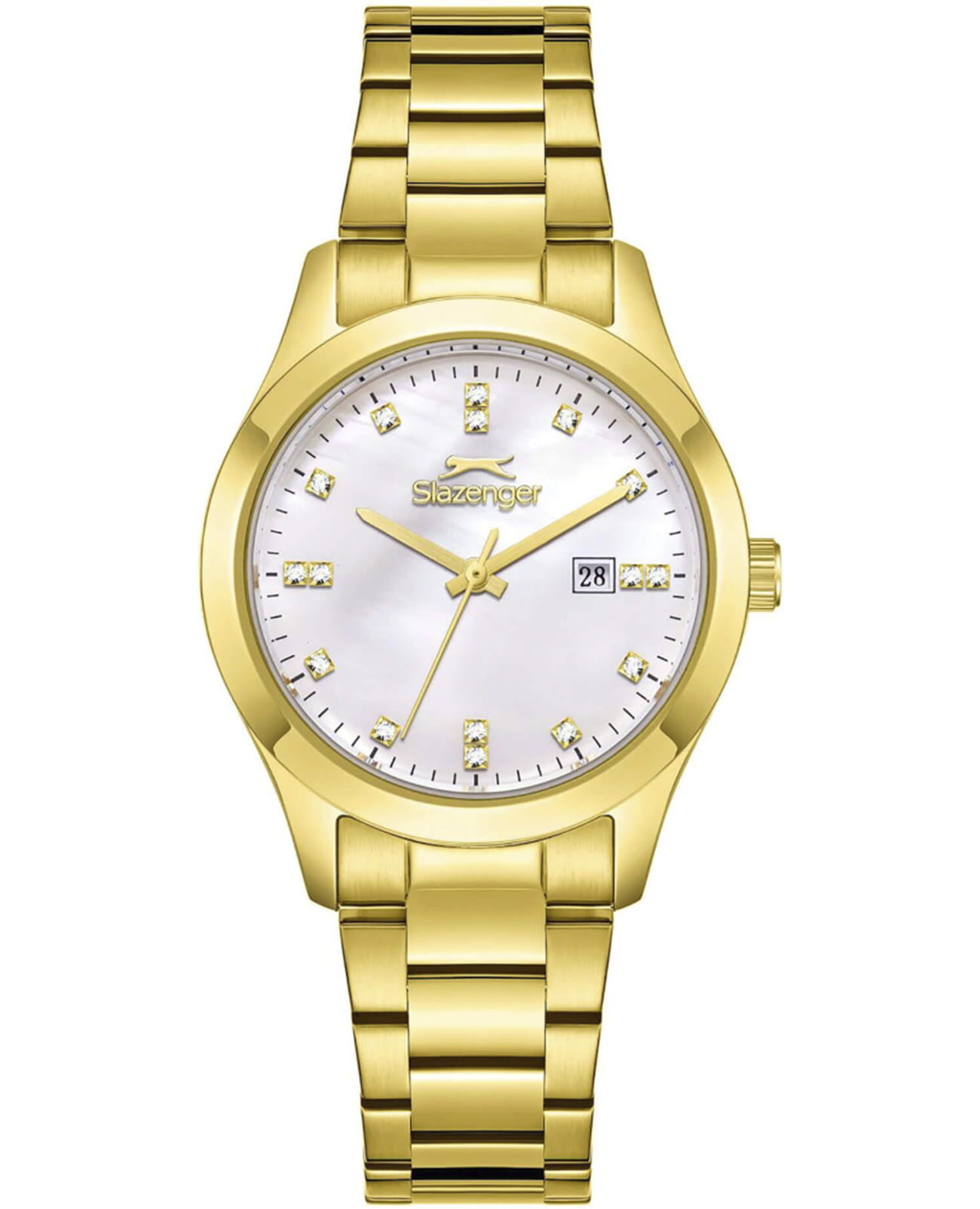 Женские кварцевые часы Slazenger — это элегантный аксессуар. Корпус диаметром 32 мм и толщиной 10 мм выполнен из суперметалла с IP-покрытиемIP-покрытиеМетод ионного напыления. Демонстрирует повышенную устойчивость к истиранию, окислению и химическим веществам. Под воздействием высокого давления и температуры около 1500°C молекулы металла надёжно соединяются с частицами корпуса часов.. Циферблат белого цвета с перламутровыми вставками оформлен индексами в виде фианитов. Циферблат защищён минеральным стекломМинеральное стеклоМинеральное стекло представляет собой искусственно выращенный минерал кварца. Такое стекло отличается особой устойчивостью к повреждениям и царапинам. Уступает по некоторым качествам сапфировому стеклу.. Механизм — кварцевый. Окошко даты расположено в положении 3 часов. Часы оснащены браслетом из суперметалла с IP-покрытиемIP-покрытиеМетод ионного напыления. Демонстрирует повышенную устойчивость к истиранию, окислению и химическим веществам. Под воздействием высокого давления и температуры около 1500°C молекулы металла надёжно соединяются с частицами корпуса часов. и раскладной застёжкойРаскладная застёжкаТакой тип застёжки используется только на браслетах из металла. Она никогда не раскрывается полностью, происходит разделение на 2 и более частей. Раскладывающая застёжка снизит вероятность потери часов к минимуму.. Водонепроницаемость 50 м позволяет использовать часы в повседневных условиях. Гарантия — 12 месяцев. Идеальный выбор для тех, кто ценит стиль и качество.