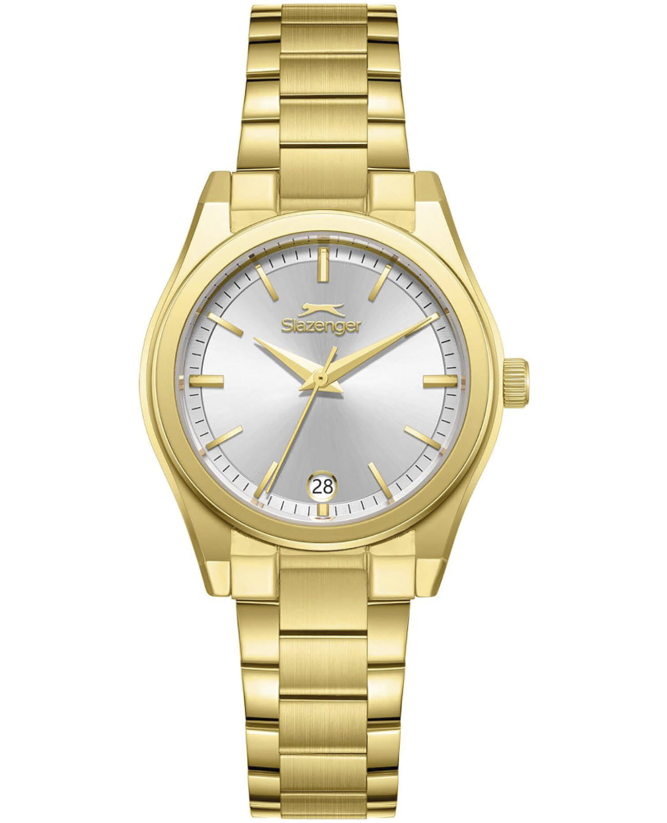 Женские кварцевые часы Slazenger — это элегантный аксессуар. Корпус диаметром 32 мм и толщиной 8 мм выполнен из суперметалла с IP-покрытиемIP-покрытиеМетод ионного напыления. Демонстрирует повышенную устойчивость к истиранию, окислению и химическим веществам. Под воздействием высокого давления и температуры около 1500°C молекулы металла надёжно соединяются с частицами корпуса часов.. Циферблат серебристого цвета оформлен индексами и стрелками, защищён минеральным стекломМинеральное стеклоМинеральное стекло представляет собой искусственно выращенный минерал кварца. Такое стекло отличается особой устойчивостью к повреждениям и царапинам. Уступает по некоторым качествам сапфировому стеклу.. Механизм — кварцевый. Окошко даты расположено в положении 6 часов. Часы оснащены браслетом из суперметалла с IP-покрытиемIP-покрытиеМетод ионного напыления. Демонстрирует повышенную устойчивость к истиранию, окислению и химическим веществам. Под воздействием высокого давления и температуры около 1500°C молекулы металла надёжно соединяются с частицами корпуса часов. и на застёжке «бабочка» с кнопкамиЗастёжка "бабочка"Такой вид застёжки дополняется предохранителями, помогающими избежать случайного раскрытия браслета. Обладают изящным исполнением. . Водонепроницаемость 50 м позволяет использовать часы в повседневных условиях. Гарантия — 12 месяцев. Идеальный выбор для тех, кто ценит стиль и качество.