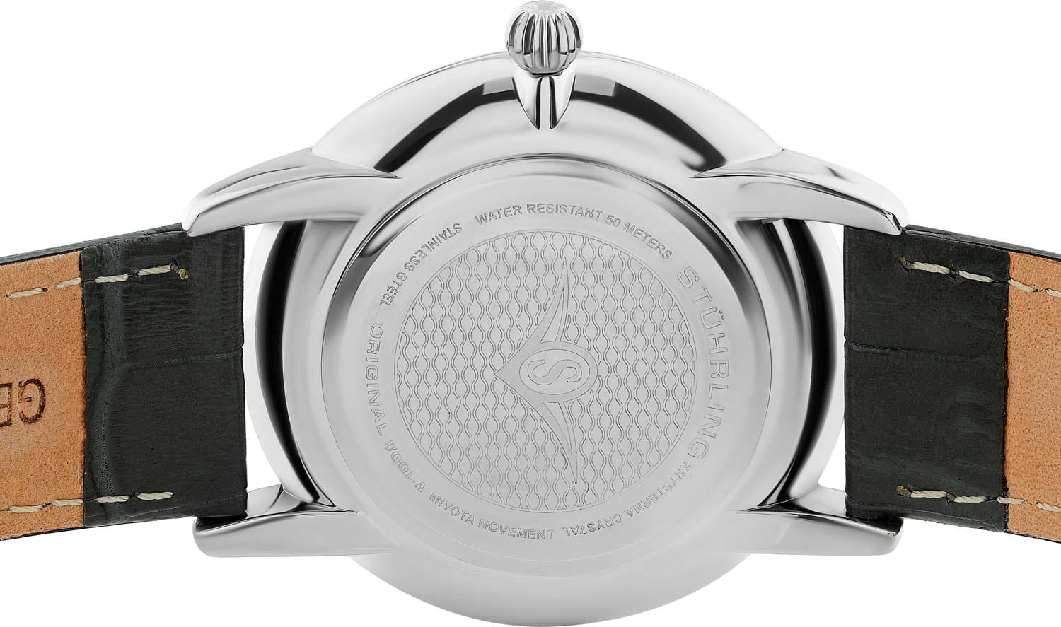 Stuhrling 3997A.4 — выразительные мужские часы с уникальным дизайнерским решением. Глубокий циферблат придаёт модели эффектный и современный вид. Корпус из нержавеющей стали отличается аккуратной полировкой и плавными формами, подчёркивающими элегантность классического стиля. Прочное стекло KrysternaKrysternaKrysterna — инновационное стекло для наручных часов. Благодаря уникальной структуре, Krysterna объединяет ключевые преимущества двух материалов: твердость сапфира, защищающую от царапин, и гибкость минерального стекла, обеспечивающую устойчивость к деформациям. Такая комбинация делает его идеальным решением для часов, подверженных экстремальным нагрузкам, сохраняя при этом оптическую прозрачность. защищает поверхность от царапин, сохраняя прозрачность и глубину цвета. Ремень из натуральной кожи на стандартной застежке, обеспечивает комфорт и надёжность при ежедневном ношении. Stuhrling — это гармония механической точности и выразительного дизайна, созданная для мужчин, ценящих стиль и совершенство деталей.
