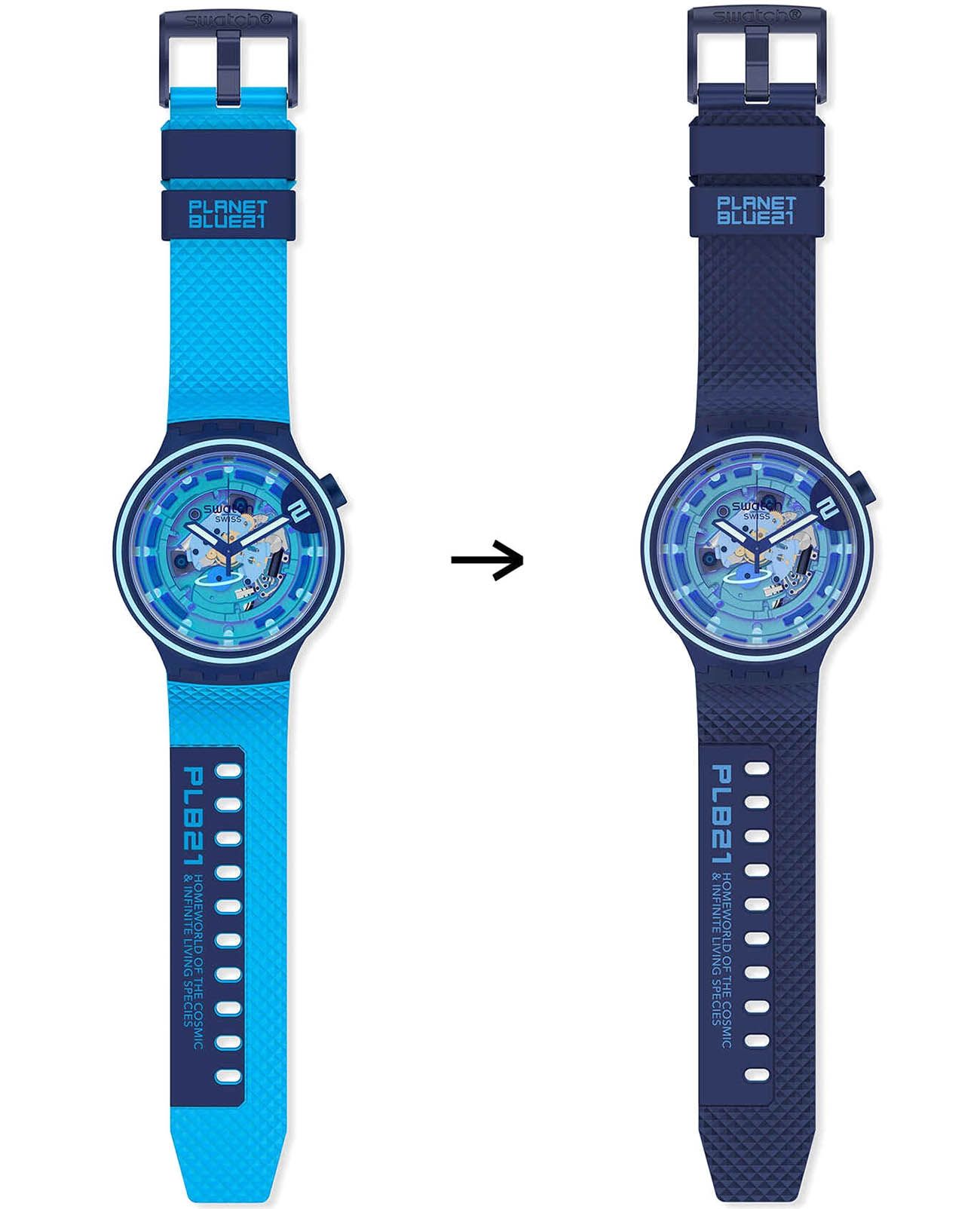 Часы Swatch SB01N101 — это стильный и современный аксессуар для тех, кто ценит лёгкость и комфорт. Часы идеально подойдут как для мужчин, так и для женщин. Модель этих часов идет в комплекте с двумя силиконовыми ремешками в космическом стиле — они эффектно подчеркивают эффект Swatch Solar Spectrum на корпусе часов. Прозрачный циферблат с разноцветным принтом позволяет сделать акцент на светящихся в темноте стрелках. Вместо стандартного колесика механизма находится особый элемент в виде синей планеты. На часовую, минутную стрелки нанесено люминесцентное покрытиеЛюминесцентное покрытиеПозволяет считывать показания времени в темноте. Производители наносят на стрелки, часовые индексы, безель или поверхность циферблата светонакопительный состав, дающий холодное свечение., которое светится в темноте, создавая необычное изображение. Водозащита 30 метров делает часы практичными для повседневного использования. Эти часы подойдут для повседневного ношения и станут ярким акцентом в вашем наряде.