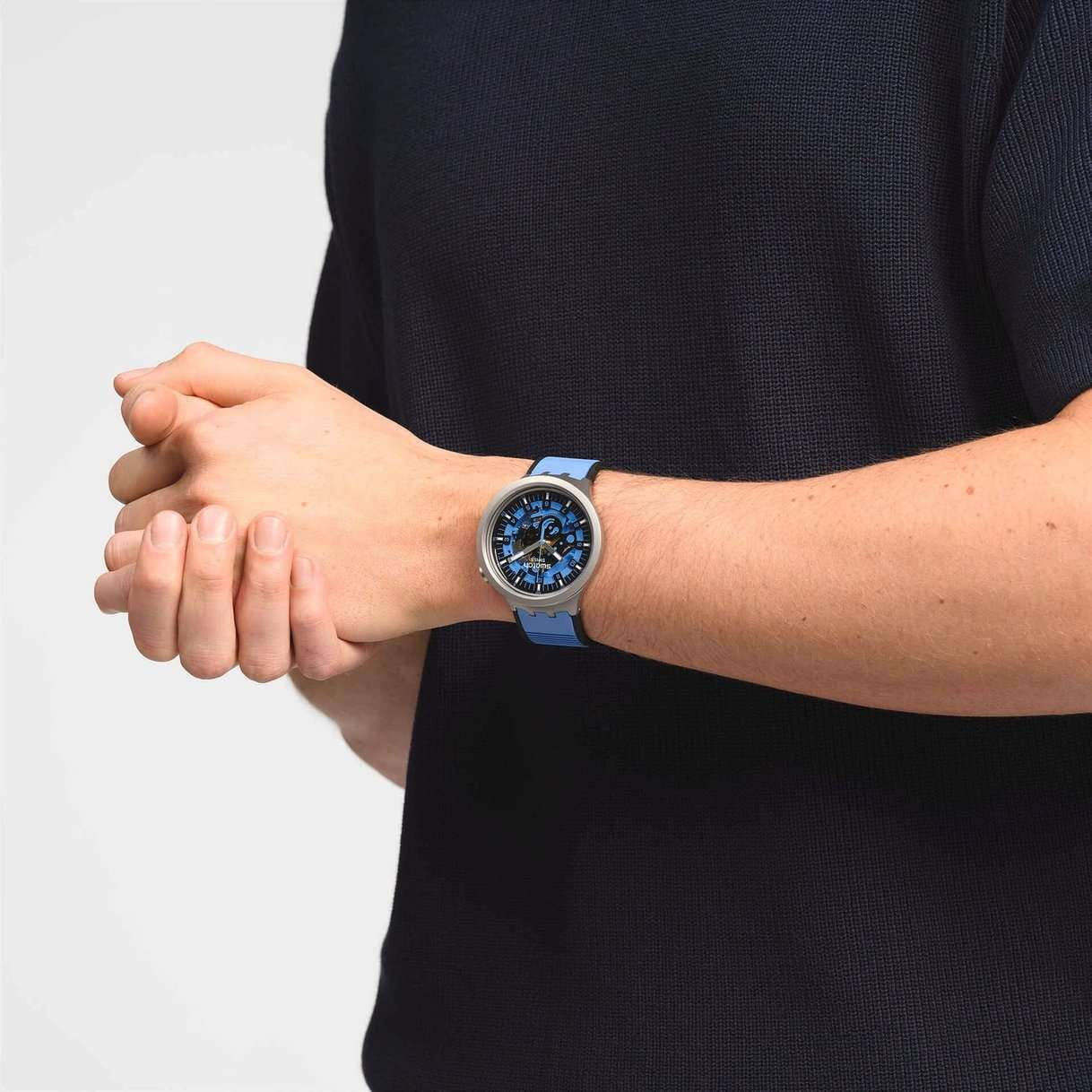 Часы Swatch SB07S106 — это стильный и современный аксессуар для тех, кто ценит лёгкость и комфорт. Часы идеально подойдут как для мужчин, так и для женщин. Эта массивная модель с металлическим корпусом, матированным методом пескоструйной обработки, имеет черный циферблат, открывающий механизм, и светящиеся в темноте стрелки благодаря люминесцентному покрытиюЛюминесцентное покрытиеПозволяет считывать показания времени в темноте. Производители наносят на стрелки, часовые индексы, безель или поверхность циферблата светонакопительный состав, дающий холодное свечение.. Крупные часы закреплены на прочном структурированном ремешке лазурной расцветки с двумя тренчиками. Водозащита 30 метров делает часы практичными для повседневного использования. Эти часы подойдут для повседневного ношения и станут ярким акцентом в вашем наряде.