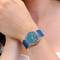 Часы Swatch  SO28K700  BLUE AWAY — это стильный и современный аксессуар, который идеально подходит для повседневного ношения. Они имеют темно-бирюзовый ремешок и циферблат, покрытый гипнотическим стеклом Swatch Solar Spectrum. Корпус часов - из биоматериала. Оранжевые стрелки и цифры контрастируют с темно-зеленым циферблатом часов, а оранжевое окошко даты и дня видно на 3 часах. Стекло часов изготовлено из прочного хезалита, который устойчив к царапинам и ударам, что гарантирует долговечность изделия.  Внутри часов установлен надежный кварцевый механизм, который обеспечивает точность хода. Эти часы водонепроницаемы до 30 метров, что позволяет не беспокоиться о случайных брызгах или дождевых каплях. Ремешок часов  выполнен из силикона и имеет регулируемую длину, застежка классическая из алюминия. Swatch SO28K700 — это идеальный выбор для тех, кто ценит сочетание стиля, комфорта и функциональности в одном аксессуаре.