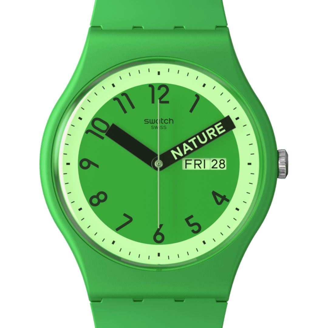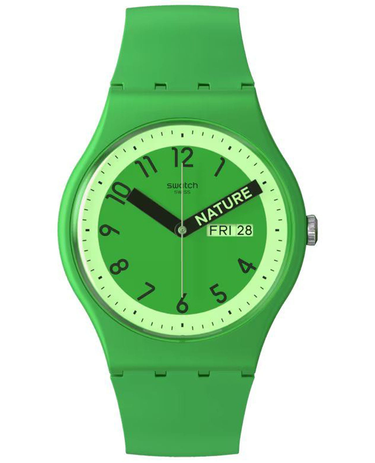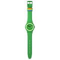 Часы Swatch SO29G704 —  стильный и надежный аксессуар. Эти специальные часы Swatch Pride 2023 имеют циферблат с зеленым принтом и зеленое стекло из биоматериала в корпусе из биоматериала. Стрелки часов и минут черные, при этом стрелка минут указывает на значение цвета зеленого в флаге Pride: природа. Соответствующий ремешок этих зеленых часов включает две специальные петли, которые образуют радугу, когда они соединены. Ремешок силиконовый на классической застежке. Внутри часов установлен надежный кварцевый механизм, который обеспечивает точность хода. Эти часы водонепроницаемы до 30 метров, что позволяет не беспокоиться о случайных брызгах или дождевых каплях. Swatch SO29G704 — это идеальный выбор для тех, кто ценит сочетание стиля, комфорта и функциональности в одном аксессуаре.