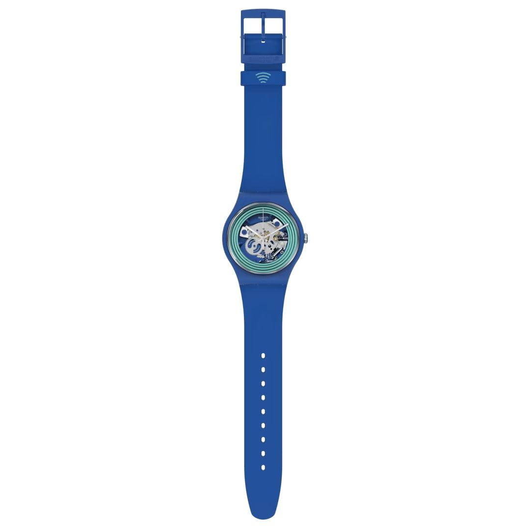 Часы Swatch New Gent Biosourced Swatch Pay! SO29N103-5300 — это стильный и современный аксессуар, который идеально подходит для повседневного ношения. Эти часы поддерживают функцию SwatchPAY!. Лучший способ оплатить все ваши новые приключения! Темно-синий силиконовый ремешок и корпус этих часов выделяются на фоне циферблата из биологического стекла, бирюзового кольца и стрелок с люминесцентным покрытиемЛюминесцентное покрытиеПозволяет считывать показания времени в темноте. Производители наносят на стрелки, часовые индексы, безель или поверхность циферблата светонакопительный состав, дающий холодное свечение.. Внутри часов установлен надежный кварцевый механизм, который обеспечивает точность хода. Эти часы водонепроницаемы до 30 метров, что позволяет не беспокоиться о случайных брызгах или дождевых каплях. Ремешок часов  выполнен из силикона и имеет регулируемую длину, застежка классическая из пластика. Swatch SO29N103-5300 — это идеальный выбор для тех, кто ценит сочетание стиля, комфорта и функциональности в одном аксессуаре.