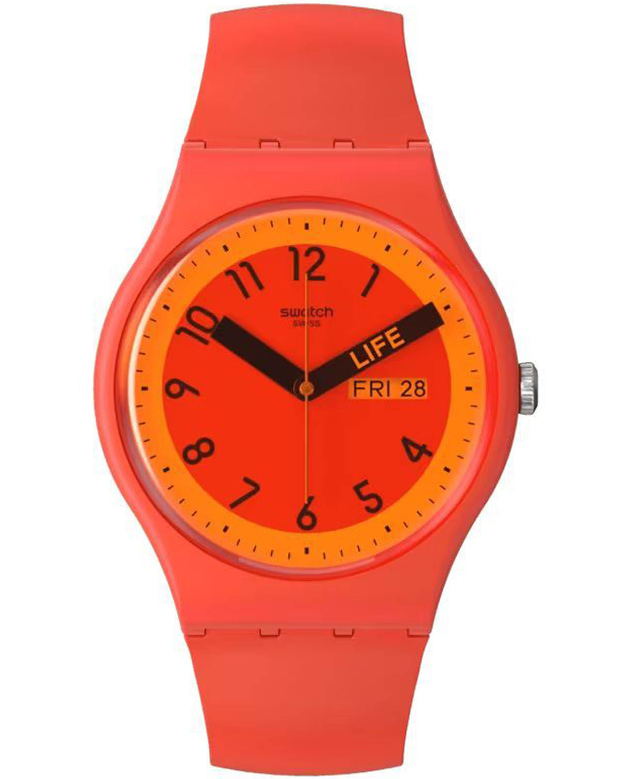 Часы Swatch SO29R705 — стильный и надежный аксессуар. Эти часы Swatch Pride 2023 Special отличаются циферблатом с красным принтом и красным стеклом из биоматериалов, а также корпусом из тех же материалов. Часовая и минутная стрелки выполнены в черном цвете, при этом минутная стрелка символизирует значение красного цвета в флаге Прайда: жизнь. Ремешок этих красных часов дополнен двумя специальными петлями, которые, соединяясь, образуют радугу. Ремешок силиконовый на классической застежке. Имеется окошко даты и дня недели в положении 3 часа. Внутри часов установлен надежный кварцевый механизм, который обеспечивает точность хода. Эти часы водонепроницаемы до 30 метров, что позволяет не беспокоиться о случайных брызгах или дождевых каплях. Swatch SO29R705 — это идеальный выбор для тех, кто ценит сочетание стиля, комфорта и функциональности в одном аксессуаре.