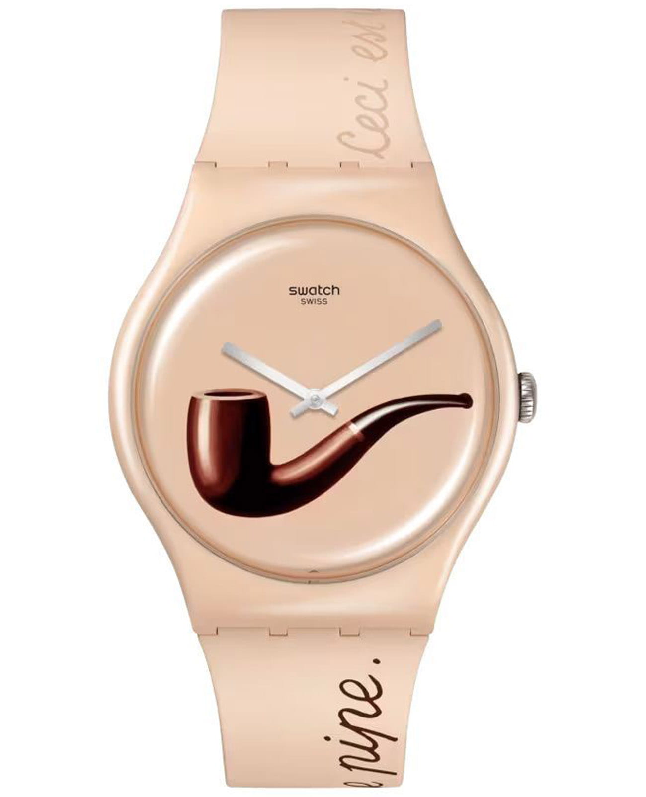 Часы Swatch SO29Z124 — стильный и надежный аксессуар. Оформление этих часов включает детали культового произведения сюрреалистического художника Рене Магритта "La Trahison des images" (Предательство образов), напечатанные на бежевом циферблате. На передней части ремешка подчеркивается сюрреалистическая природа его творчества фразой: "Ceci n'est pas une pipe. Ceci est une Swatch." ("Это не трубка. Это Swatch."). На петле также напечатано имя художника. Циферблат покрыт биостеклом. Ремешок силиконовый на классической застежке. Внутри часов установлен надежный кварцевый механизм, который обеспечивает точность хода. Эти часы водонепроницаемы до 30 метров, что позволяет не беспокоиться о случайных брызгах или дождевых каплях. Swatch SO29Z124 — это идеальный выбор для тех, кто ценит сочетание стиля, комфорта и функциональности в одном аксессуаре.