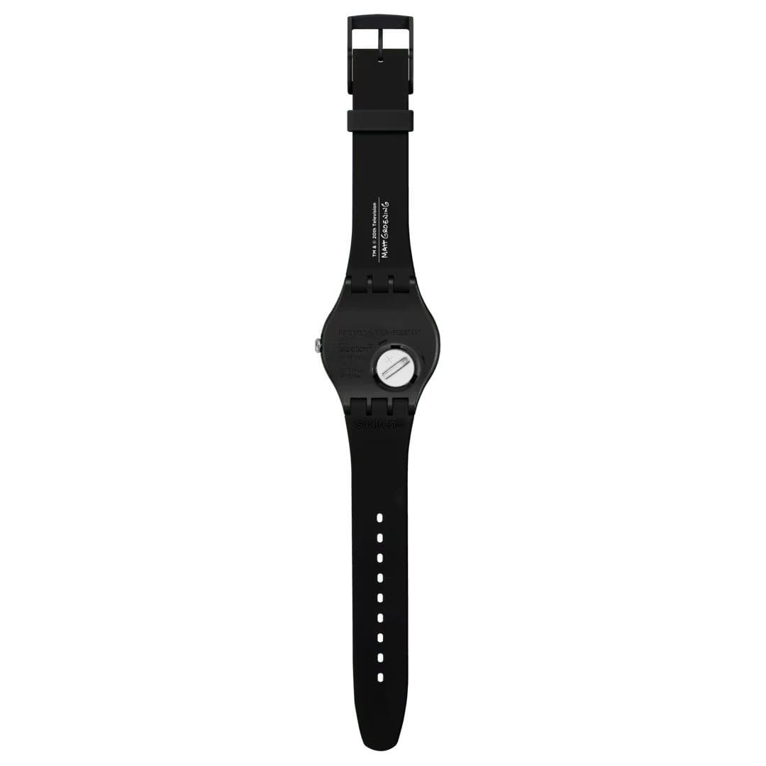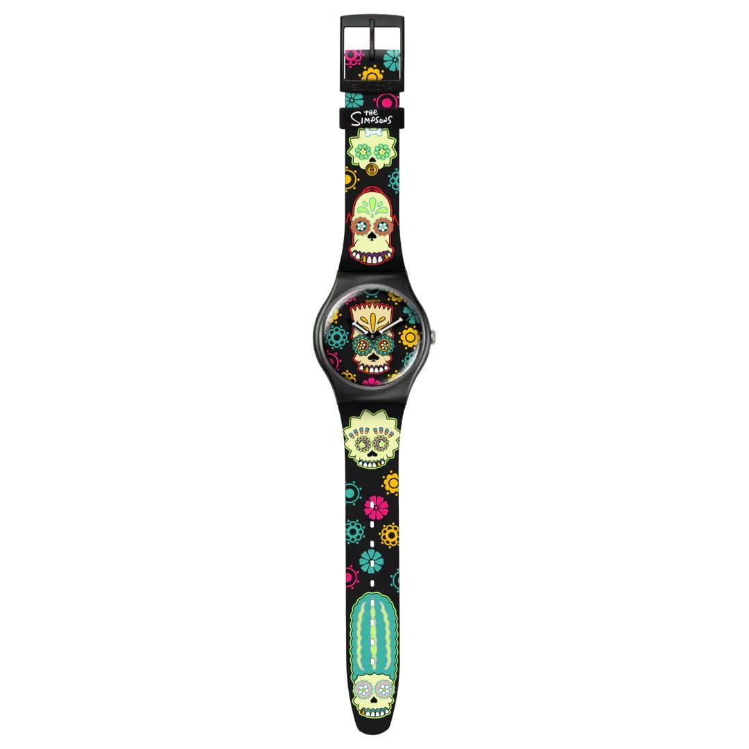 Часы Swatch SO29Z135 — эффектный и надежный аксессуар. Эти праздничные часы входят в коллекцию "Симпсоны" и изображают всю семью Симпсонов в масках на Хэллоуин. Изображения выполнены в многоцветной печати на матовом черном циферблате и ремешке. Черный циферблат украшен принтом и светящимися в темноте деталями, а также черными стрелками часов и минут с люминесцентным покрытиемЛюминесцентное покрытиеПозволяет считывать показания времени в темноте. Производители наносят на стрелки, часовые индексы, безель или поверхность циферблата светонакопительный состав, дающий холодное свечение. и белым принтом в форме костей. Логотип "Симпсоны" выполнен белым цветом на черной петле, а матовая черная пряжка завершает дизайн этих часов. Ремешок из силикона на стандартной застёжке. Внутри часов установлен надежный кварцевый механизм, который обеспечивает точность хода. Эти часы водонепроницаемы до 30 метров, что позволяет не беспокоиться о случайных брызгах или дождевых каплях. Swatch SO29Z135 — это идеальный выбор для тех, кто ценит сочетание стиля, комфорта и функциональности в одном аксессуаре.