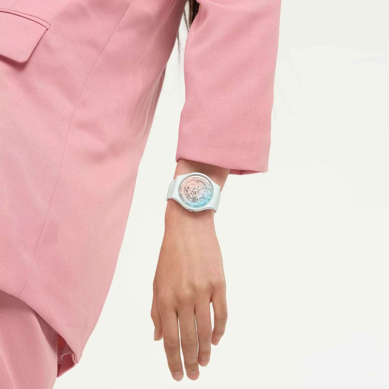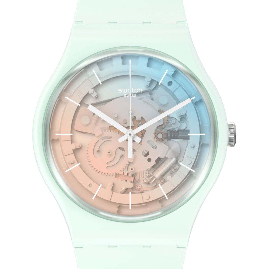 Часы Swatch SO32S101 — это стильный и универсальный аксессуар, подходящий как для мужчин, так и для женщин. Модель отличается круглым корпусом диаметром 41 мм и толщиной 9 мм, выполненным из прочного пластика светло-голубого цвета. Циферблат также покрыт стеклом голубо-розового оттенка, что создает гармоничный и привлекательный внешний вид. Часы оснащены кварцевым механизмом, обеспечивающим точное измерение времени. Стекло из плексигласа защищает циферблат от царапин и повреждений. Ремешок выполнен из силикона, что обеспечивает комфорт при носке. Водонепроницаемость 3 бар позволяет не беспокоиться о случайных брызгах или кратковременном погружении в воду. Модель SO32S101 не имеет функции отображения даты, что придает циферблату минималистичный и чистый вид. Прозрачный циферблат позволяет наблюдать механизм часов. Эти часы станут ярким акцентом в любом образе. Они идеально подойдут как для повседневной носки, так и для особых случаев, привлекая внимание своим необычным цветовым решением и современным дизайном.
