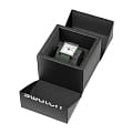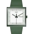 Swatch New Gent Bioceramic Standard SO34G700 "WHAT IF...GREEN?" - это стильные квадратные часы с корпусом 41.8 x 41.8 мм из зеленой матовой биокерамики и белым циферблатом. Модель оснащена кварцевым механизмом, окошком даты и дня недели, водонепроницаемостью до 20 метров. Часы имеют зеленый матовый ремешок из биоматериала и стекло из биоматериала. Стрелки с люминесцентным покрытиемЛюминесцентное покрытиеПозволяет считывать показания времени в темноте. Производители наносят на стрелки, часовые индексы, безель или поверхность циферблата светонакопительный состав, дающий холодное свечение.. Эта экологичная модель унисекс сочетает инновационные материалы с необычным зелено-белым дизайном, вдохновленным оригинальным Swatch 1983 года, и подходит для тех, кто ценит минимализм и заботу об окружающей среде.