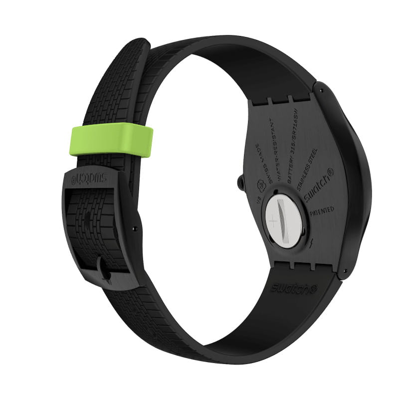 Часы Swatch SS07B108 — это стильный и современный аксессуар для тех, кто ценит лёгкость и комфорт. Часы идеально подойдут как для мужчин, так и для женщин. Эффектность данной модели придает черный циферблат с зелеными индексами и черными стрелками, светящимися в темноте благодаря люминесцентному покрытиюЛюминесцентное покрытиеПозволяет считывать показания времени в темноте. Производители наносят на стрелки, часовые индексы, безель или поверхность циферблата светонакопительный состав, дающий холодное свечение., а также минеральное стеклоМинеральное стеклоМинеральное стекло представляет собой искусственно выращенный минерал кварца. Такое стекло отличается особой устойчивостью к повреждениям и царапинам. Уступает по некоторым качествам сапфировому стеклу.. Эти черные часы дополнены каучуковым ремешком с текстурированной лицевой стороной и зеленым тренчиком, а также матовой пряжкой и корпусом с черным PVDPVDУльтратонкое покрытие наносится в технике вакуумного напыления, сочетает в себе нитрид титана особой прочности со слоем золота или оксида хрома. Несёт в себе декоративную или защитную функцию. покрытием. Водозащита 30 метров делает часы практичными для повседневного использования. Эти часы подойдут для повседневного ношения и станут ярким акцентом в вашем наряде.